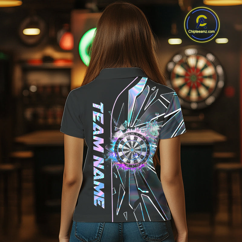 Personalized Holographic Break Glass Womens Dart Shirts Custom Darts Jersey Team Polo & 1/4 Zip TDM5157