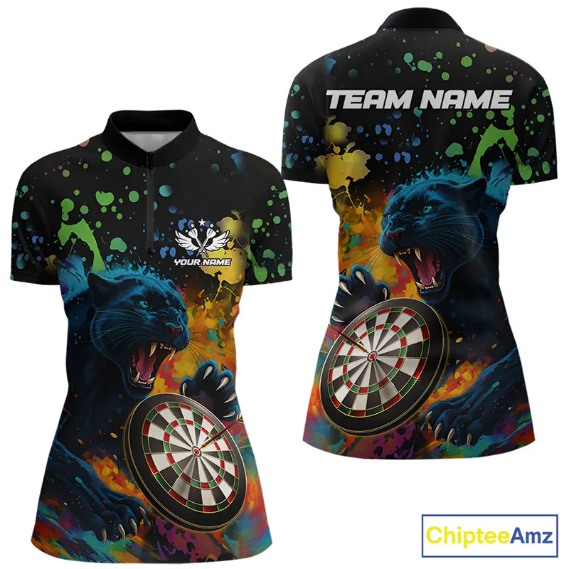 Personalized Colorful Splash Panther Darts Shirt For Women Custom Darts Jersey Team Polo & 1/4 Zip TDM5382