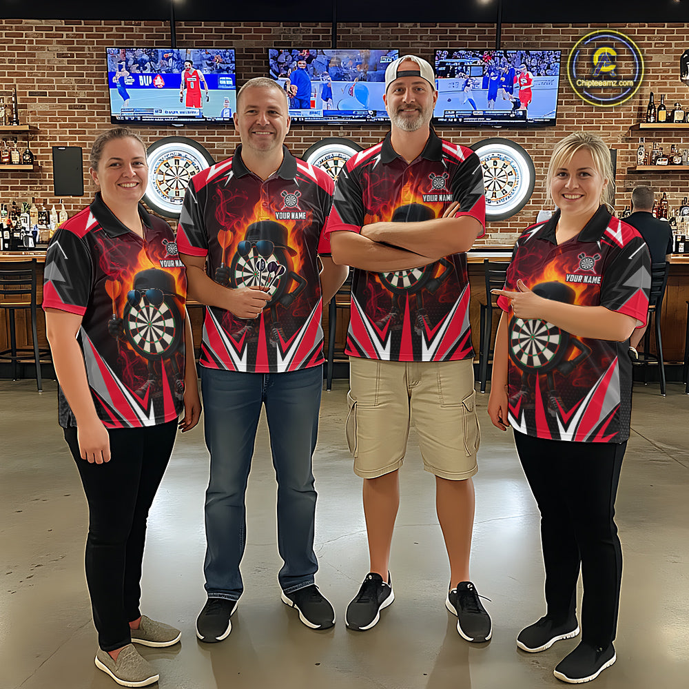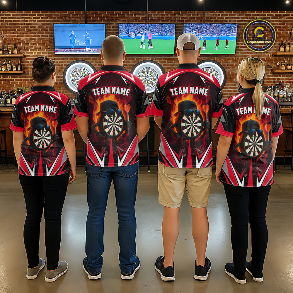 Funny Dartboard Red Flaming Darts Shirt For Women Custom Darts League Jersey Team Polo & Quarter Zip TDM5387