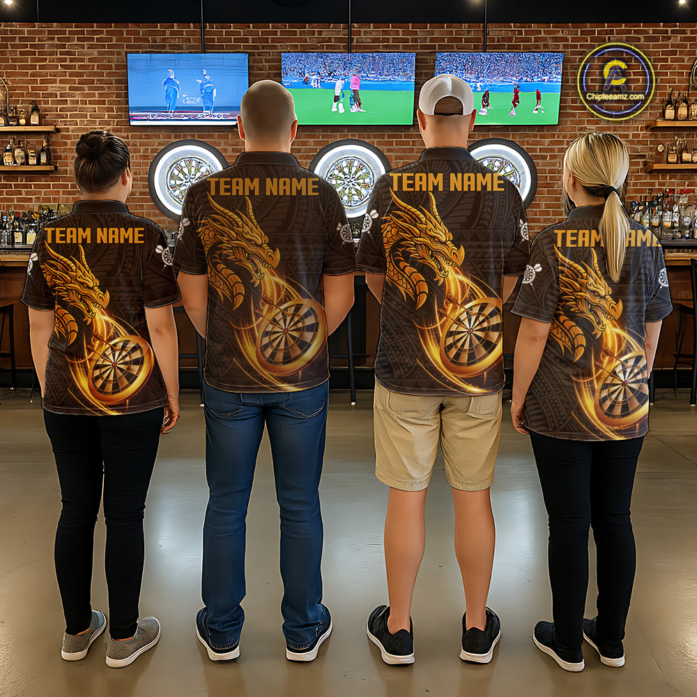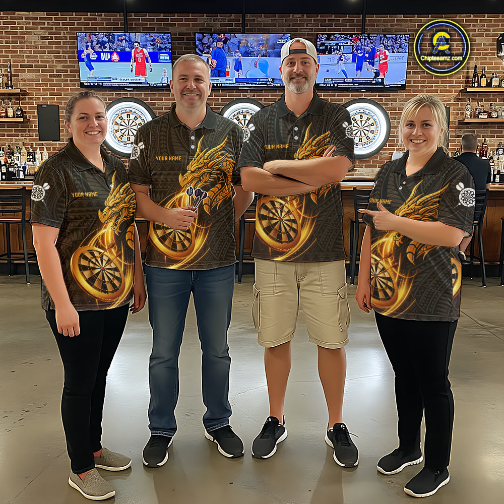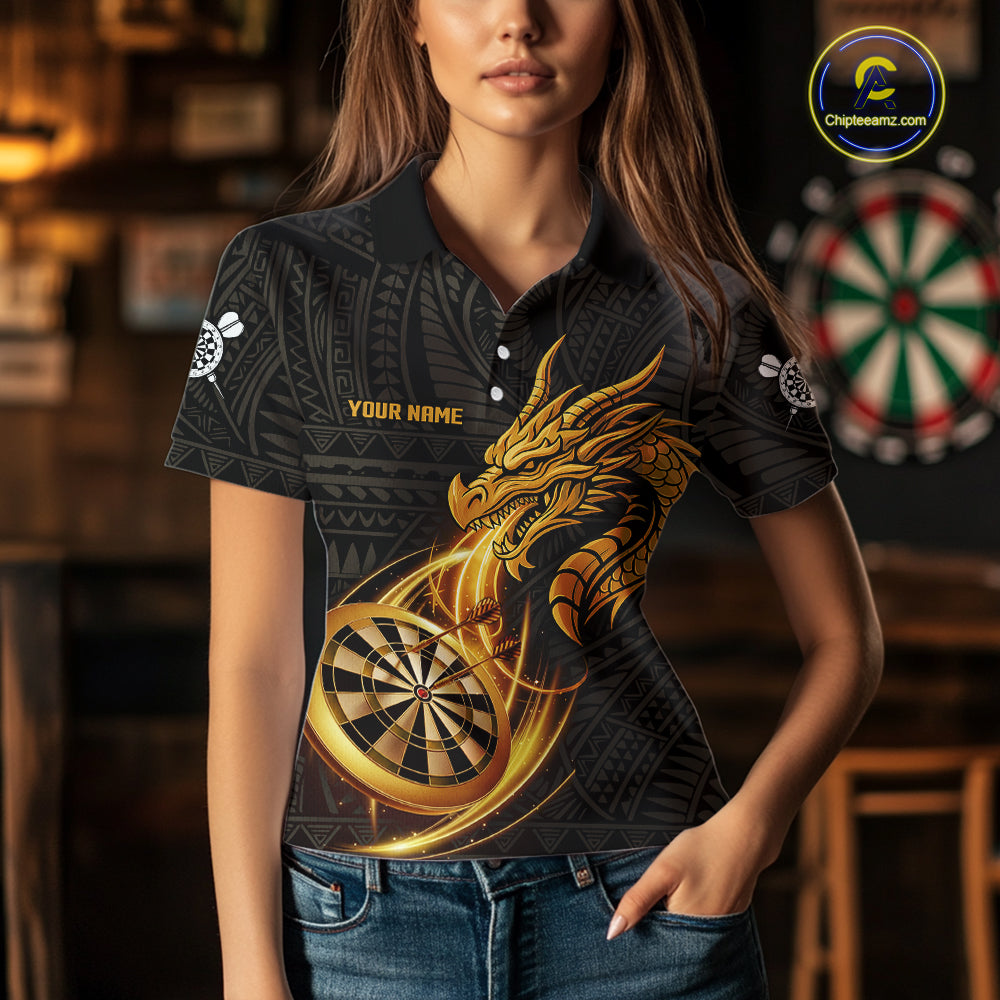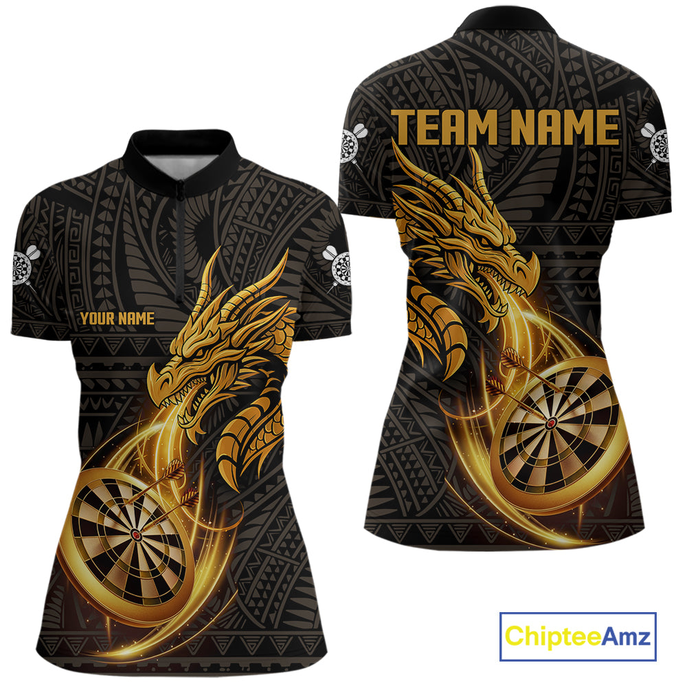 Black And Golden Custom Tribal Dragon Darts Shirt For Women, Darts Team Jersey Polo & Quarter Zip TDM5390