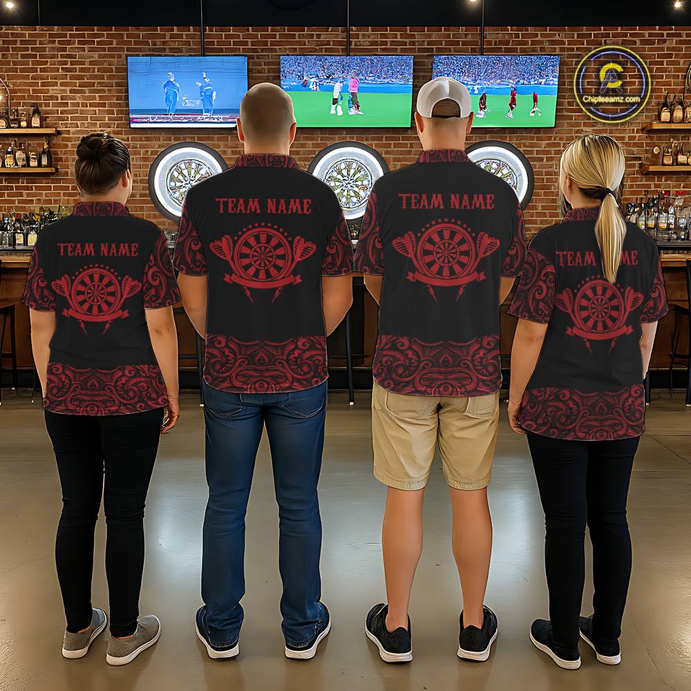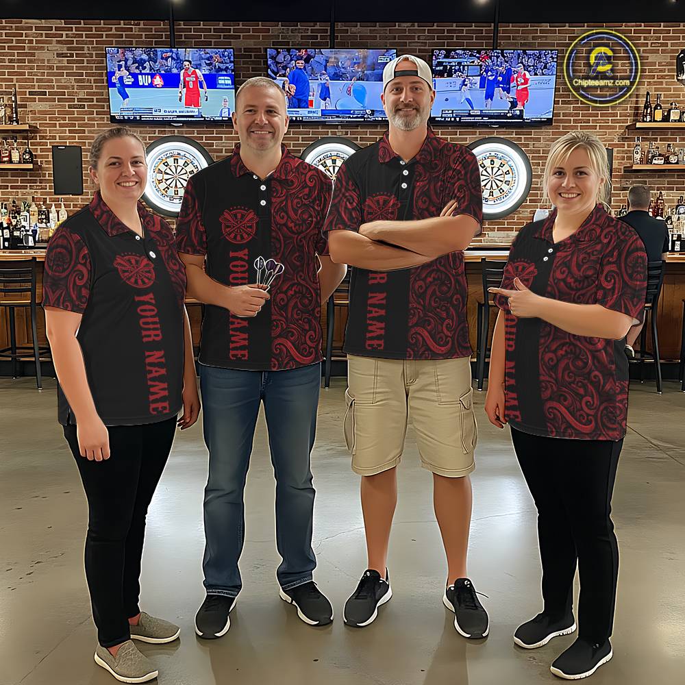 Black And Red Custom Tribal Darts Shirt For Women, Personalized Darts Jersey Team Polo & Quarter Zip TDM5391
