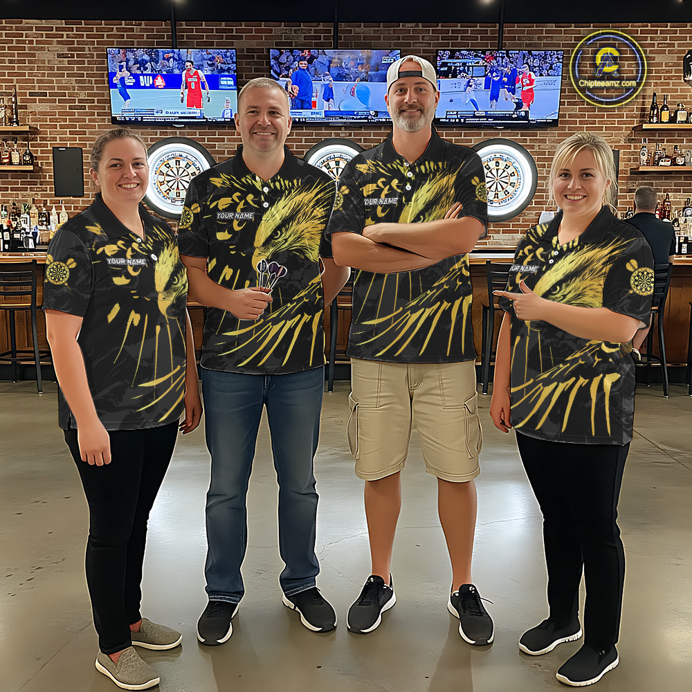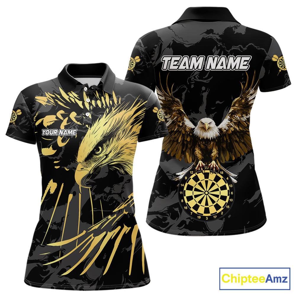 Black And Gold Custom Eagle Paint Darts Shirt For Women, Darts League Jersey Team Polo & 1/4 Zip TDM5475