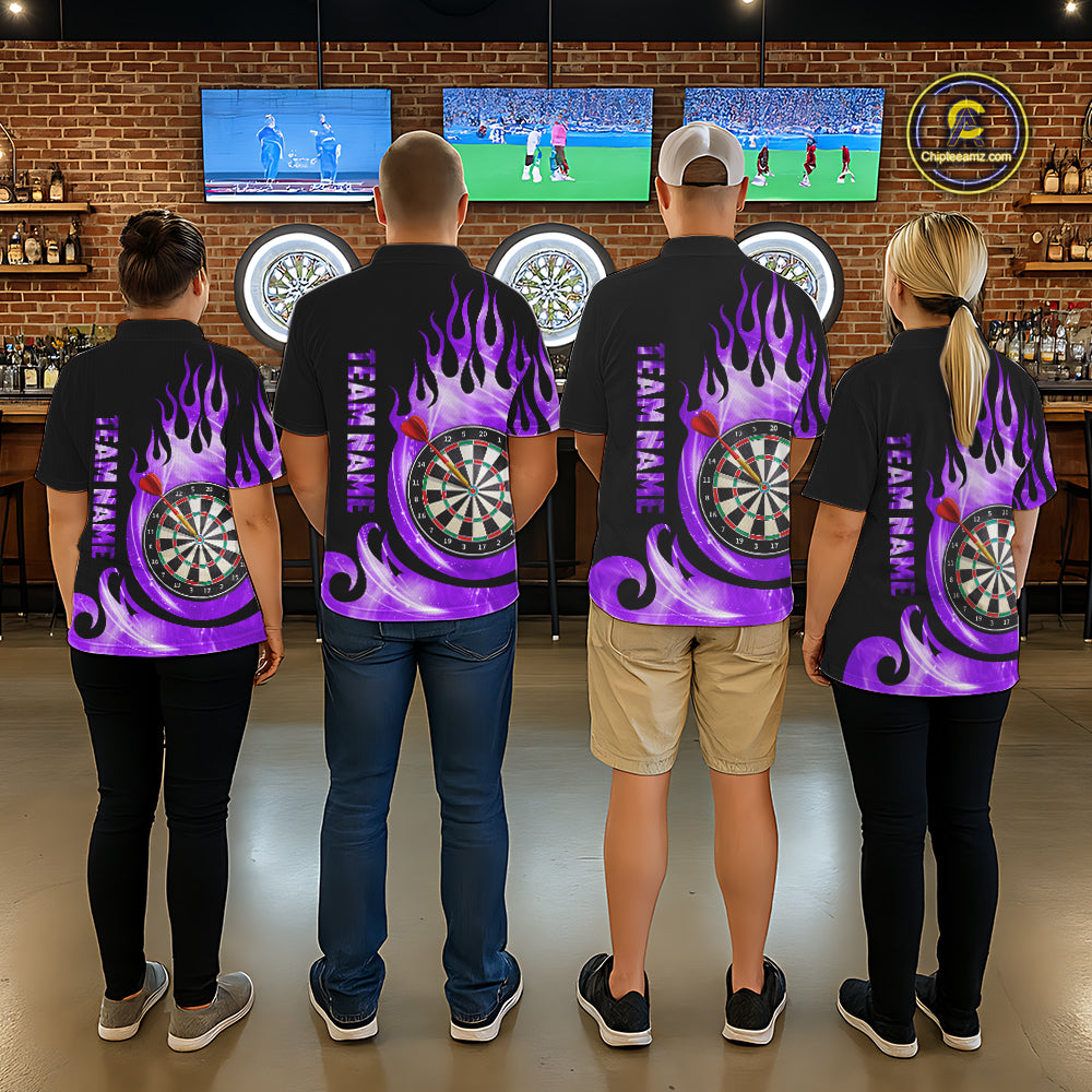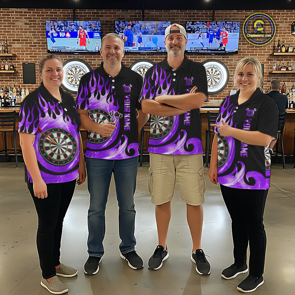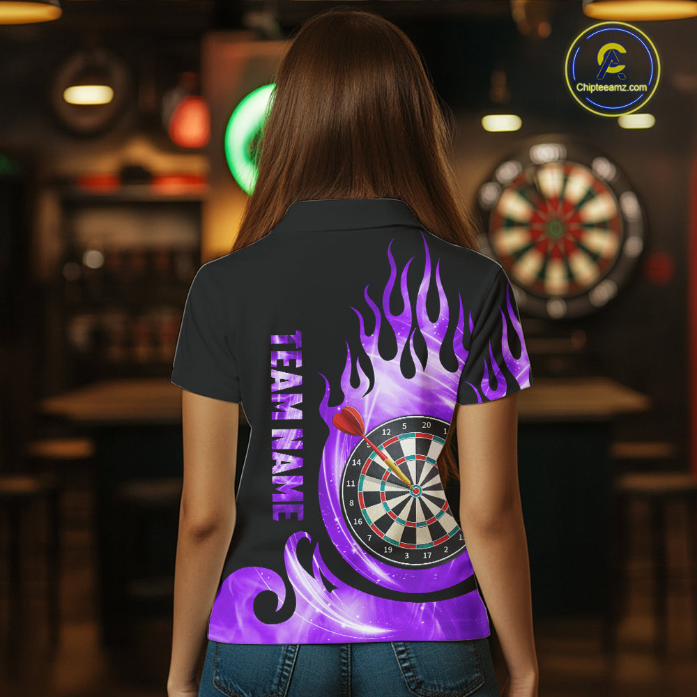 Black And Purple Custom Flame Light Darts Polo & 1/4 Zip For Women, Darts League Team Jersey TDM5480