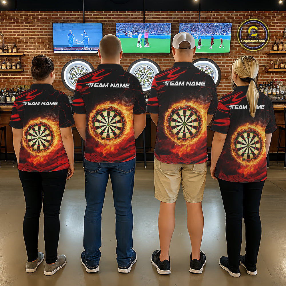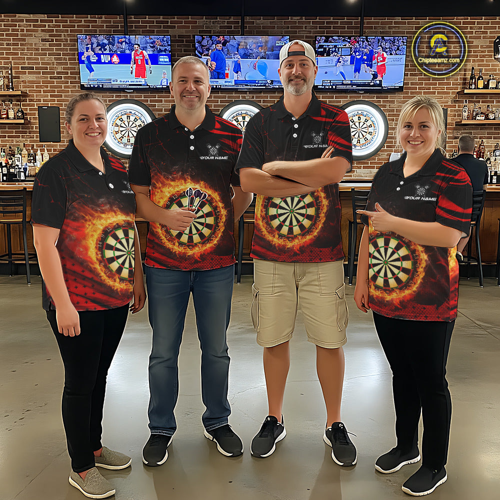 Red Flaming Dartboard Fire Darts Shirt For Women Custom Darts Jersey Team Polo & Quarter Zip TDM5501