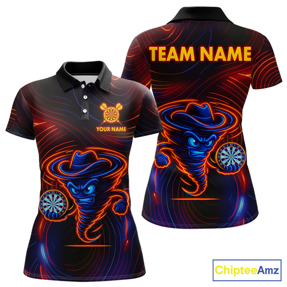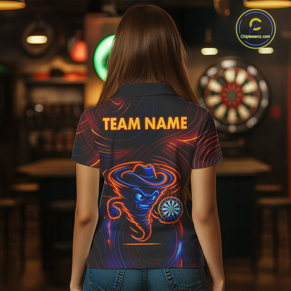 Funny Neon Tornado Darts Polo & Quarter Zip For Women Custom Darts Team Jersey, Darts Outfit TDM5505