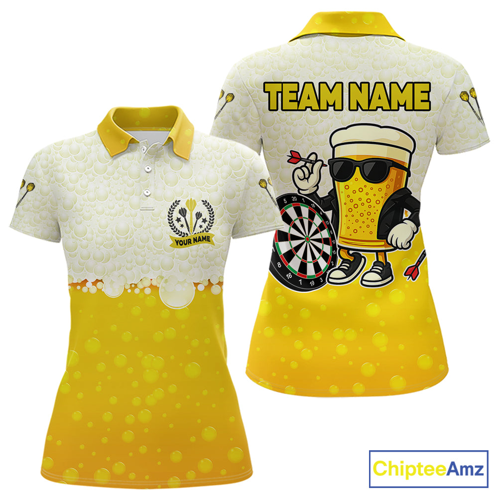 Personalized Yellow Funny Beer Darts Shirt For Women Custom Darts Jersey Team Polo & 1/4 Zip TDM5508