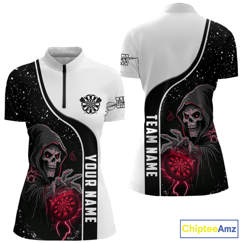 Red Grim Reaper Darts Women Polo & Quarter-Zip Custom Darts Shirts For Team Darts Jerseys TDM5525