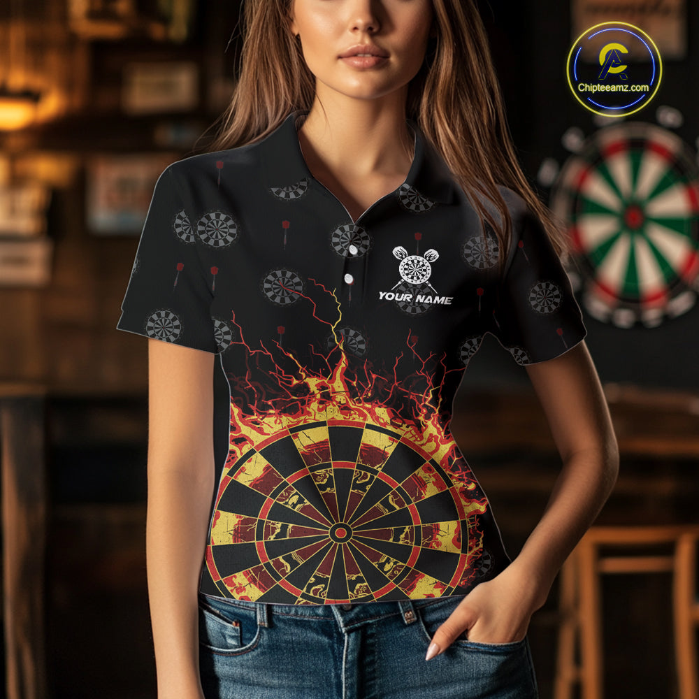 Personalized Flame Darts Polo & Quarter Zip Custom Darts Shirt For Women, Darts Team Jersey TDM5536
