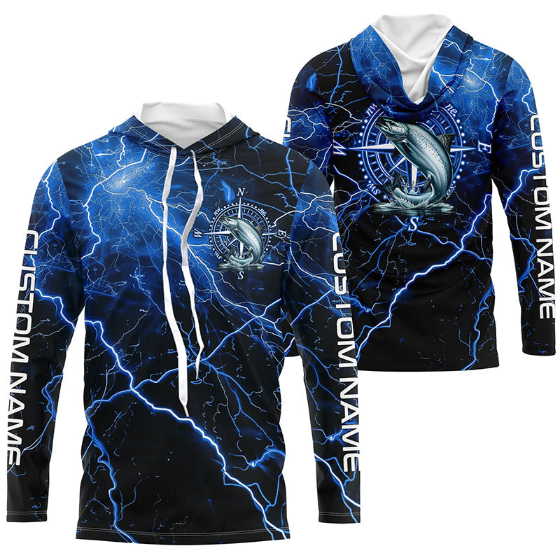Black And Blue Thunder Lightning Chinook Salmon Fishing Custom Long Sleeve Saltwater Fishing Shirts IPHW6252