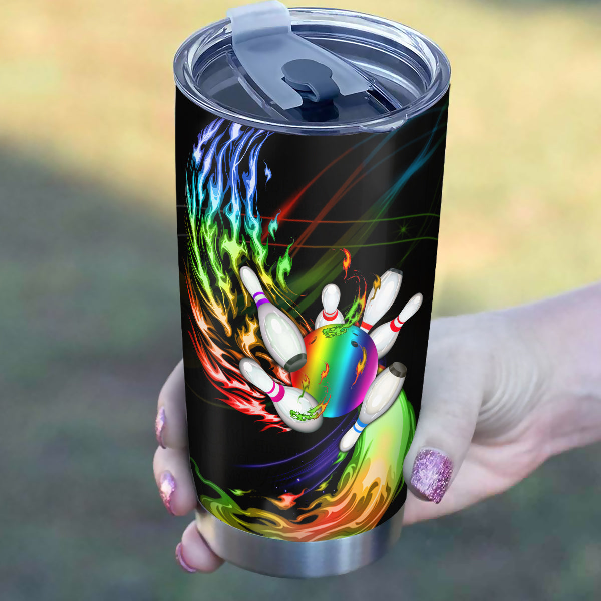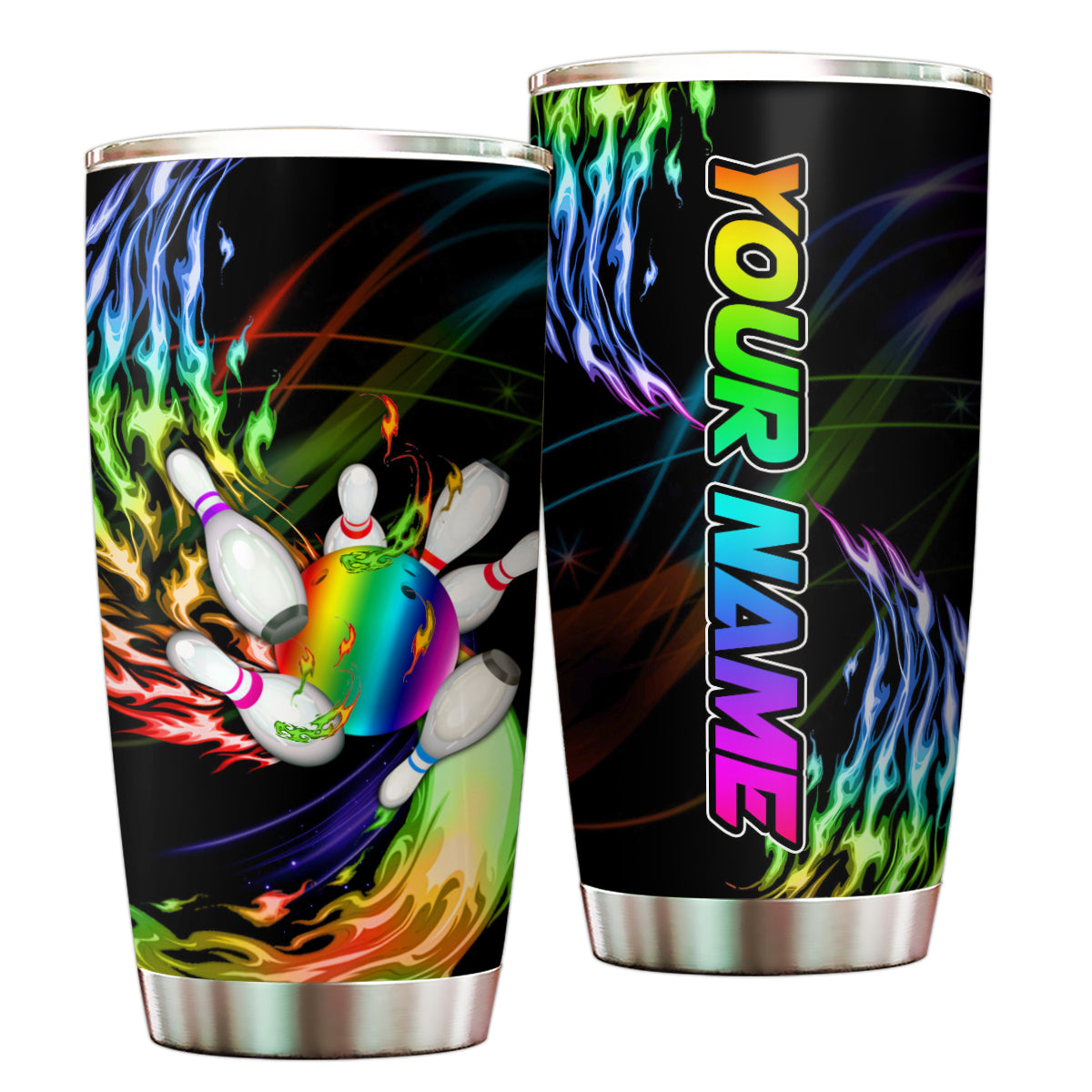 1PC Rainbow flame Bowling ball and pins Custom Stainless Steel Tumbler Cup, bowling gifts for bowlers NQS9895