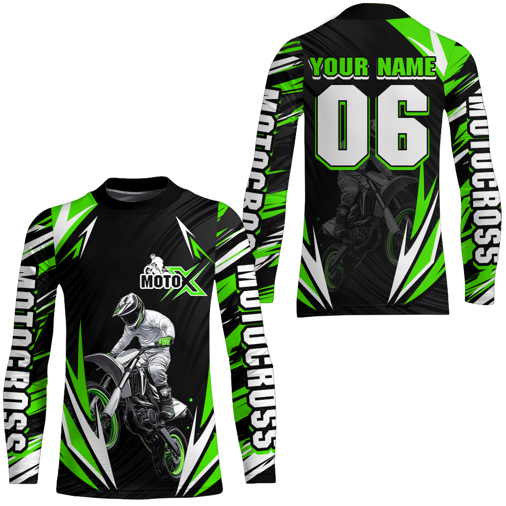 Adult&Kid Custom Green Motocross Jersey for Men Women Upf30+ Extreme Dirt Bike Shirt| CTP76