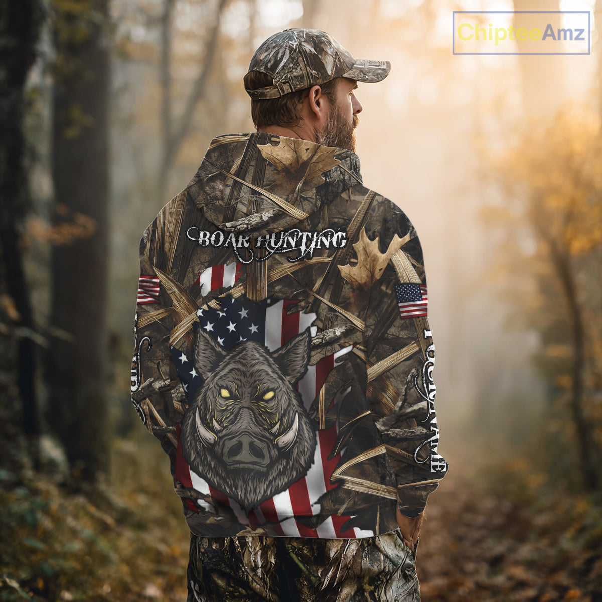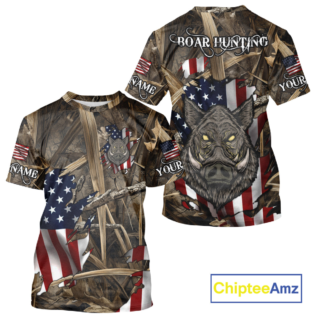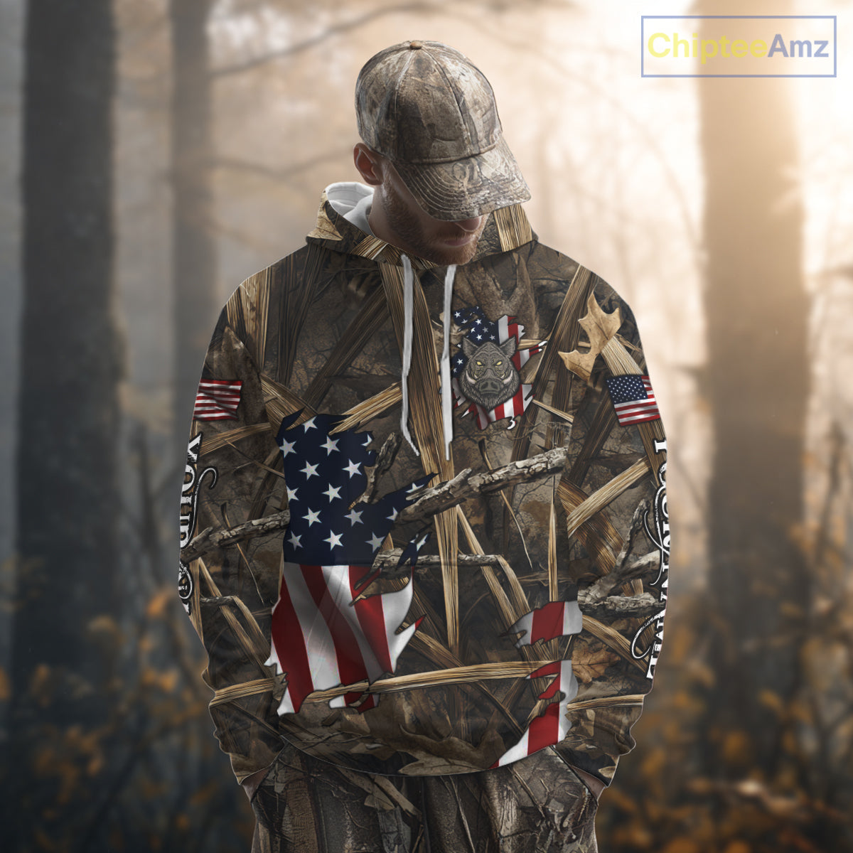 American Flag Boar Camo Hunting Shirt, Best Hunting Clothes for Boar Hunting Season NBT185