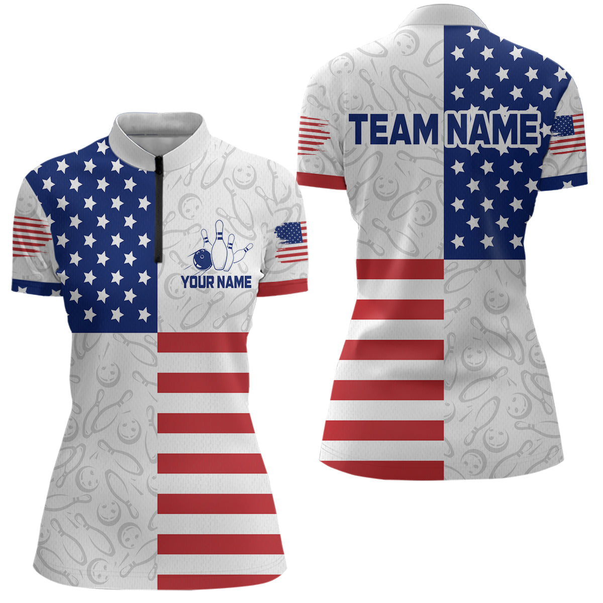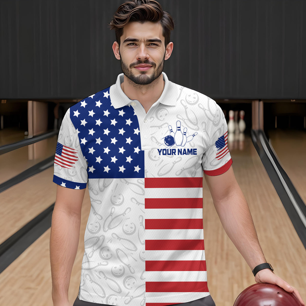 American Flag Bowling Shirt Patriotic Bowling Shirts for Men Women Bowling Jersey MBL24