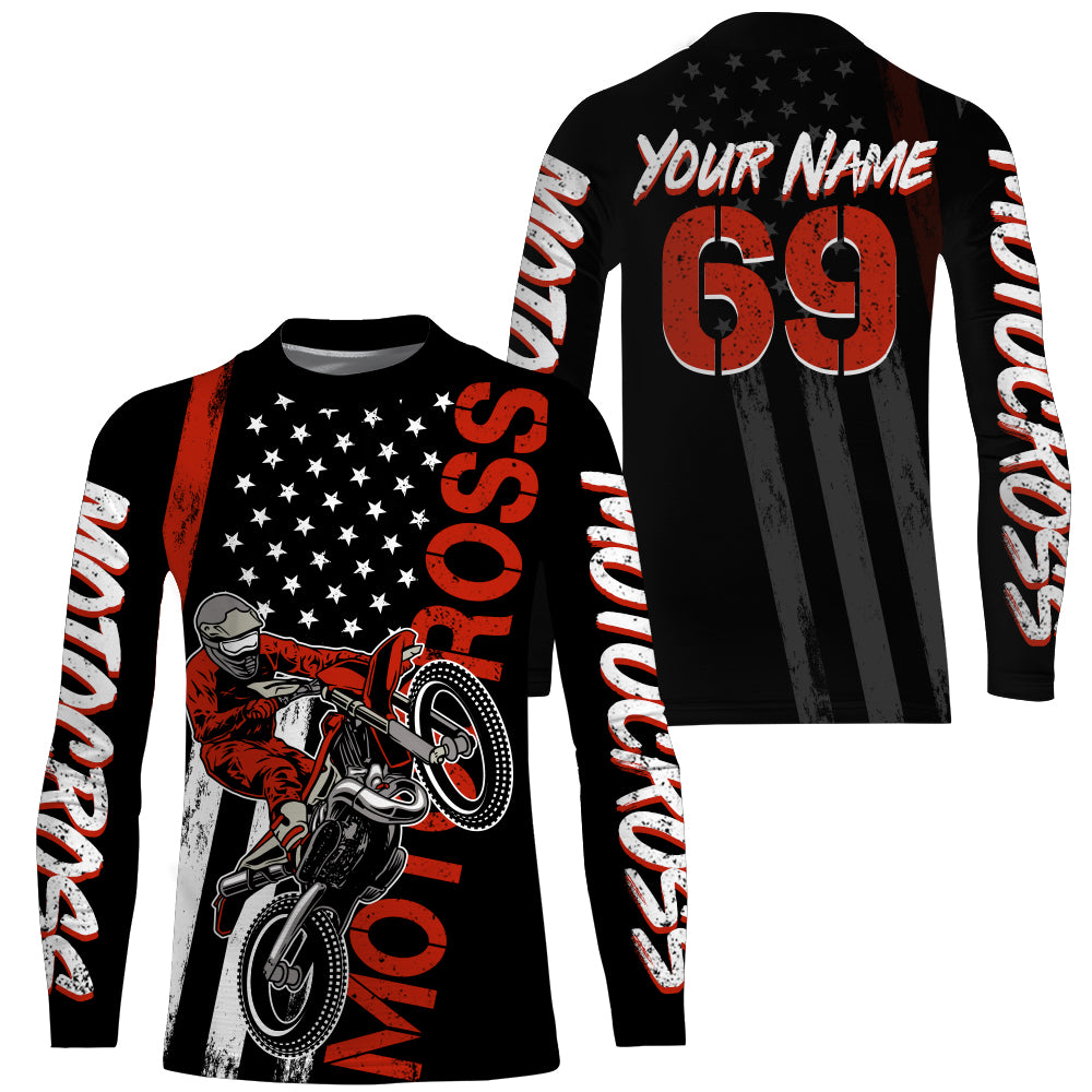 American Flag Motocross Jersey UPF30+ Racing Dirt Bike Riding Shirt Off-Road Long Sleeves XM28