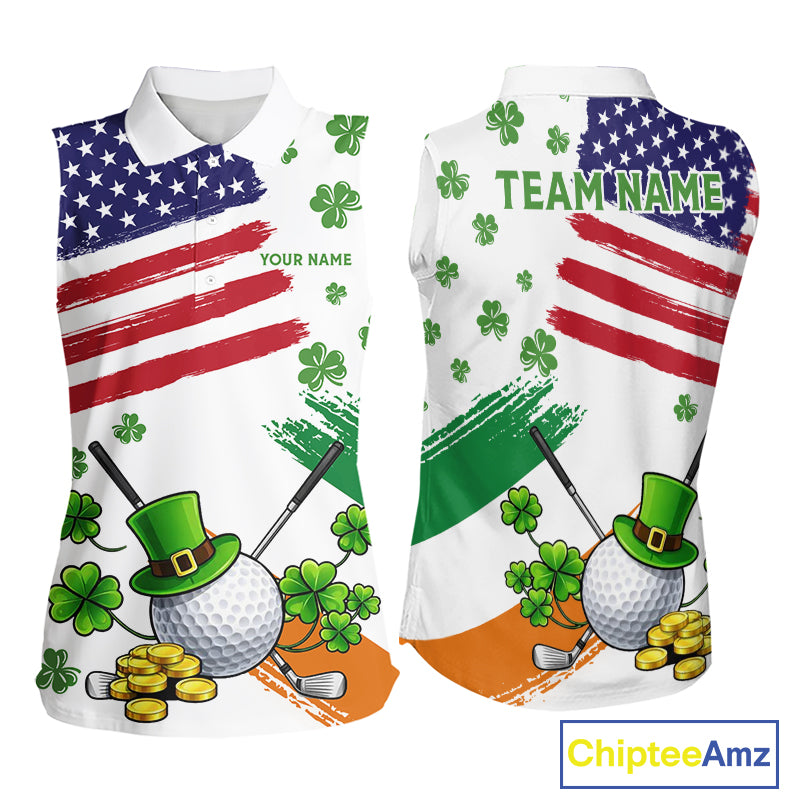 American Flag St Patrick's Day Clover Ladies Sleeveless Golf tops Custom patriotic women golf shirts NQS11453
