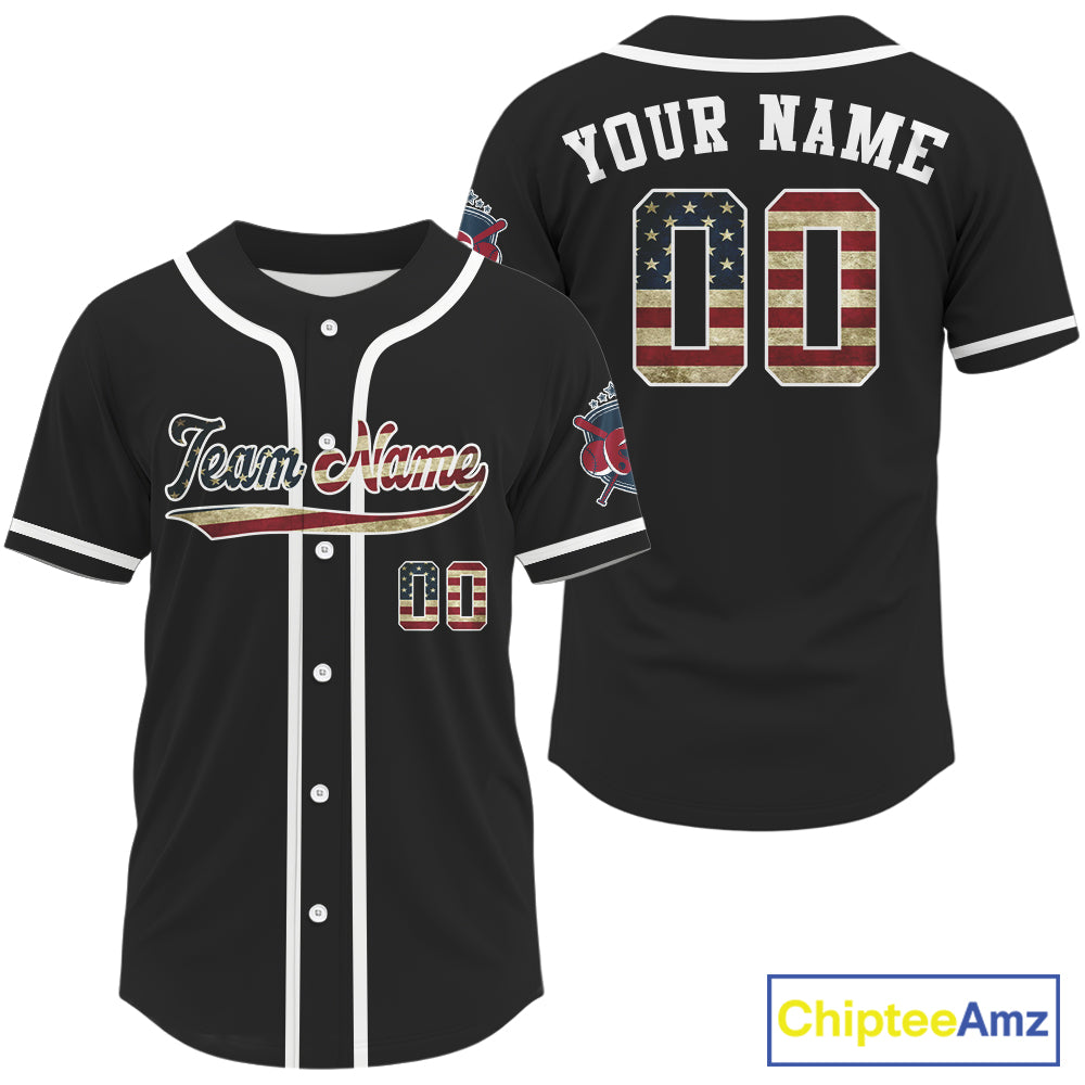Custom USA Flag Patriotic Baseball Shirts For Men Black Youth Baseball Jerseys NYN0829