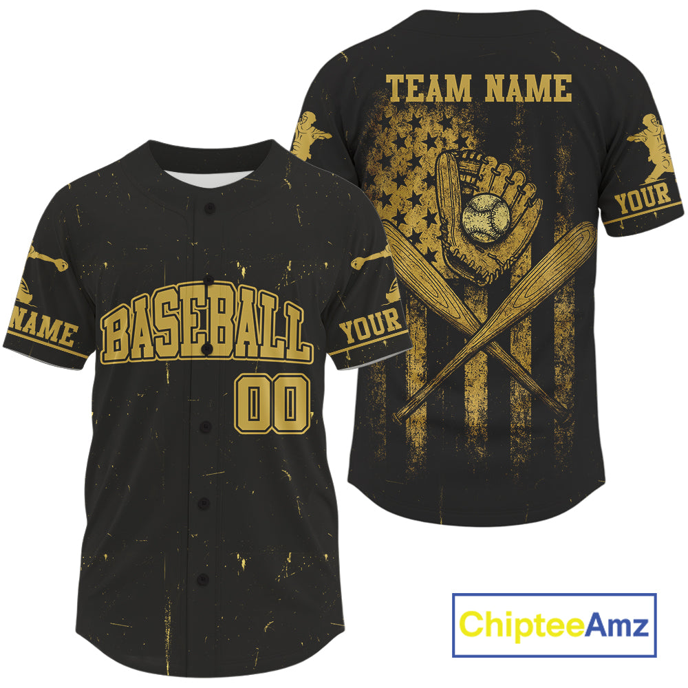 Men's Patriotic Baseball Jersey Personalized Grunge US Flag Shirt For Baseball Fans NYN0889