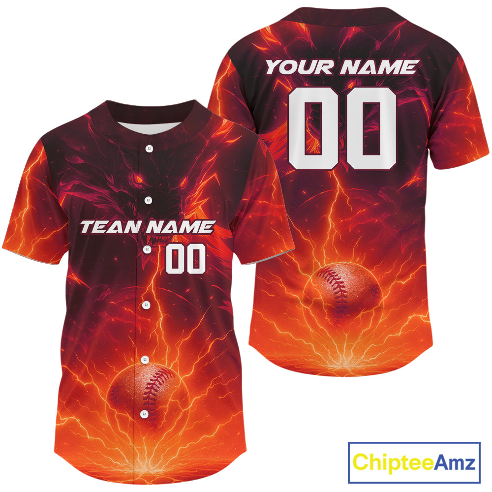 Red Custom Lightning Dragon Baseball Ball Jerseys For Men Youth Baseball Team Shirts NYN1075