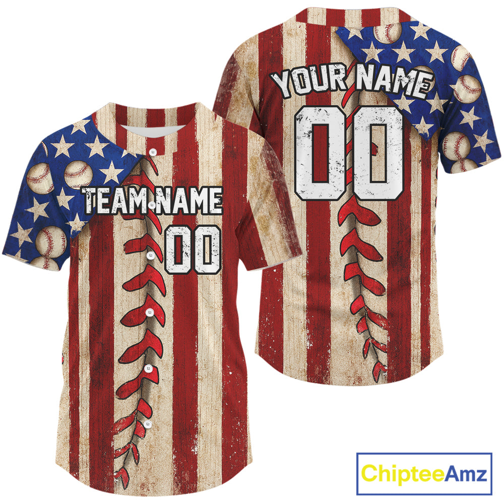 Men's Patriotic Baseball Jersey Custom US Flag Button Up Baseball Jersey For Newborns NYN1262
