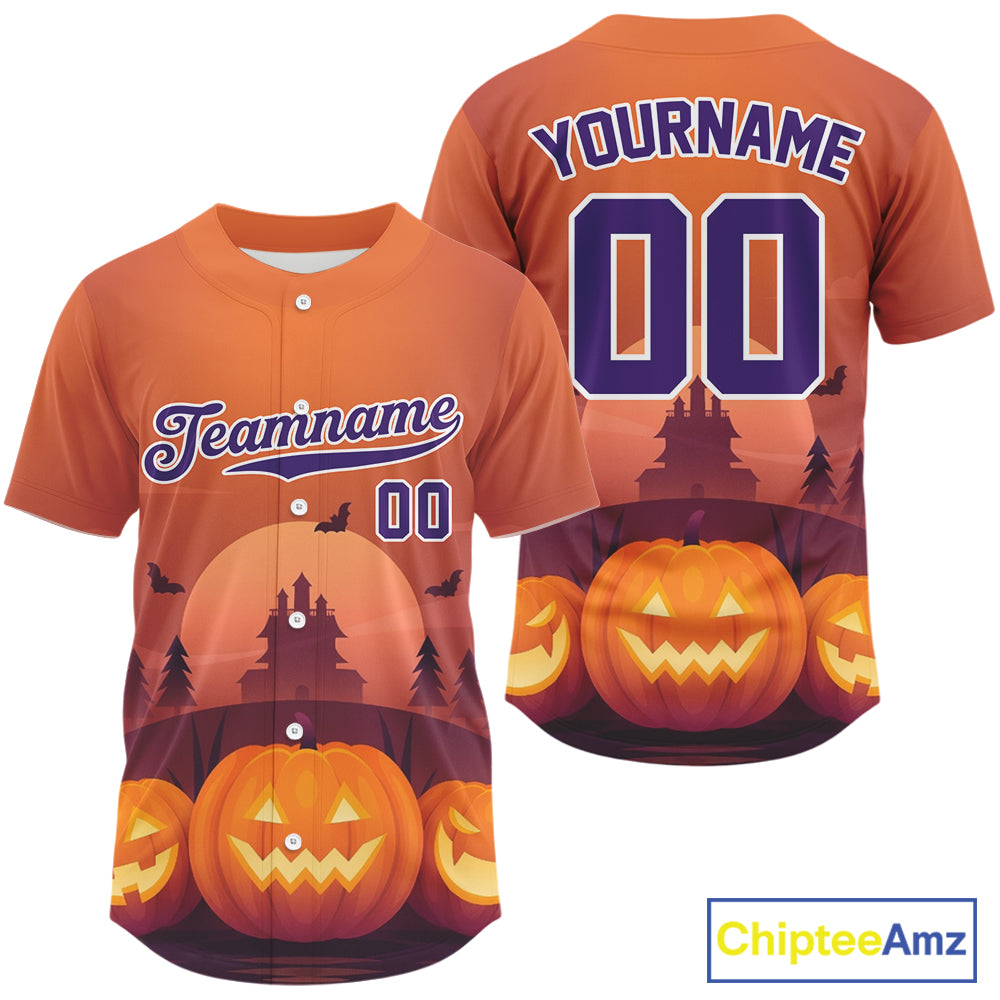 Custom Men's Pumpkin Orange Halloween Baseball Jersey, Halloween Gifts For Baseball Lovers NYN1287