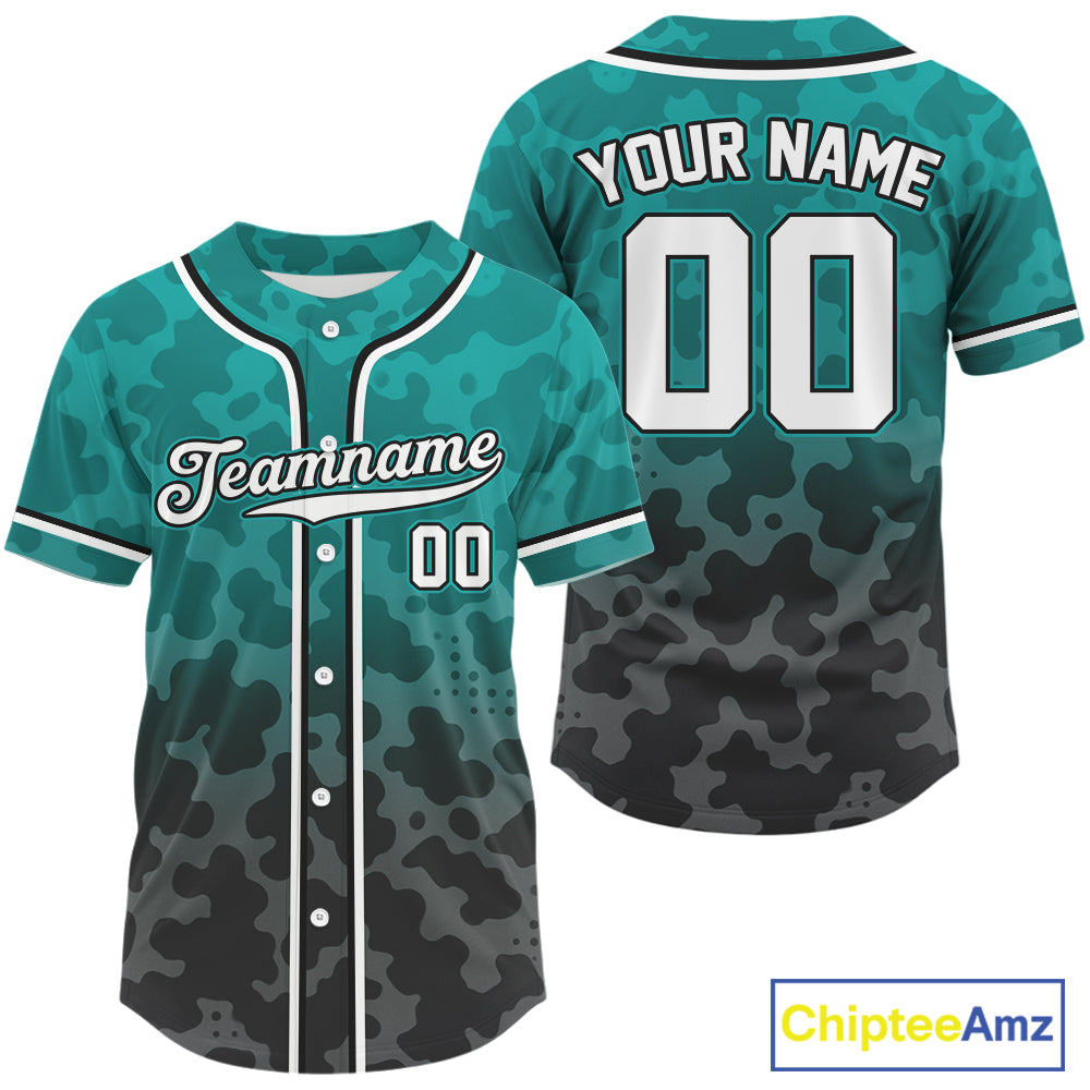 Custom Black Turquoise Camo Baseball Shirt For Men Baseball Team Jerseys NYN1595
