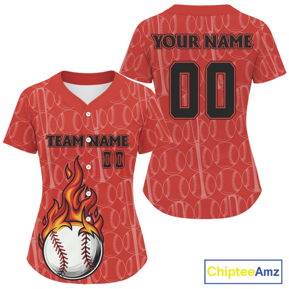 Custom Red Flames Baseball Ball Jersey For Women Personalized Youth Baseball Shirt NYN0899