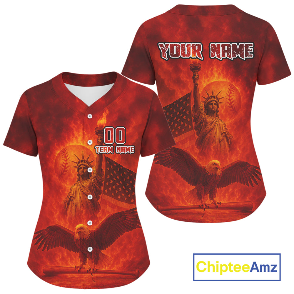 Custom Red Flames Eagle Patriotic Baseball Jerseys For Women Outfits US Flag Baseball Shirt NYN0920