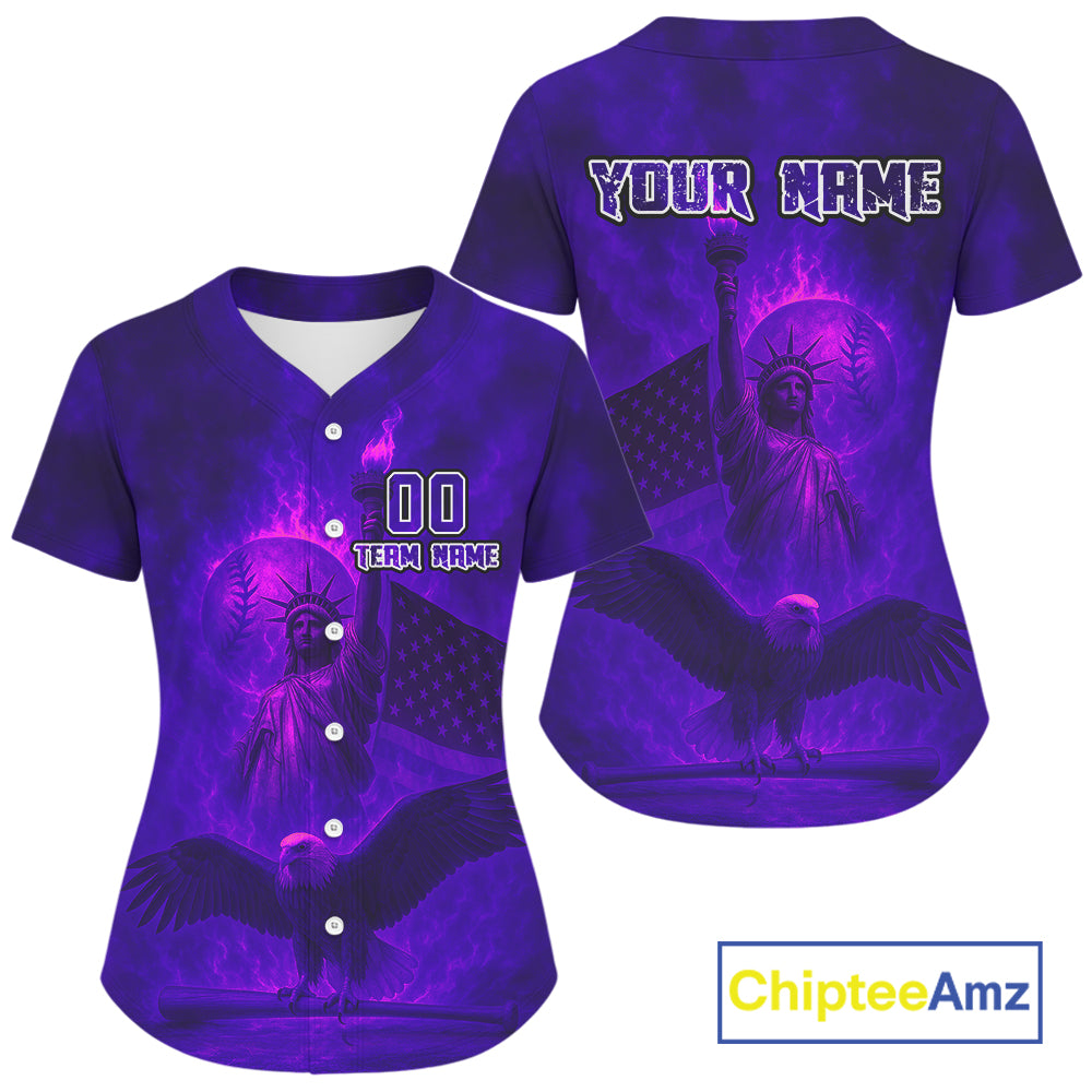 Custom Purple Flames Eagle Patriotic Baseball Jerseys For Women Outfits US Flag Baseball Shirt NYN0921