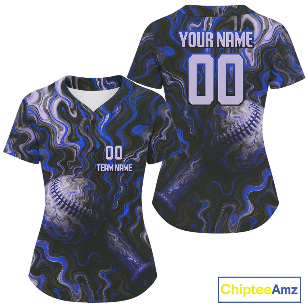 Custom Black And Blue Paint Swirl Women Baseball Jersey Outfits Baseball Tournament Shirts NYN0978