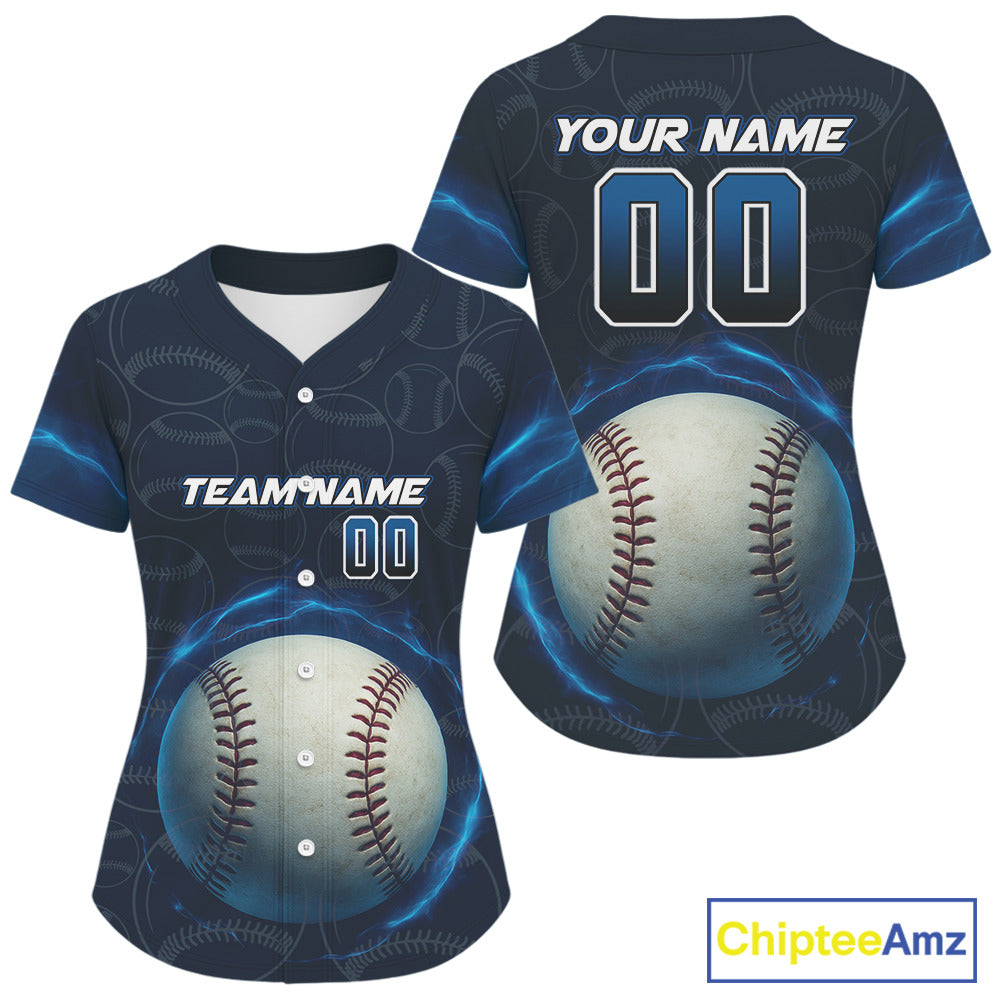 Custom Blue - Black Lightning Women Baseball Ball Jersey, Outfits Baseball Jersey For Newborns NYN1076