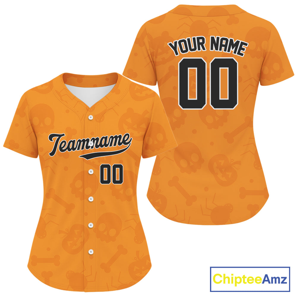 Custom Black Orange Halloween Baseball Jersey For Women Halloween Baseball Team Shirt NYN1280