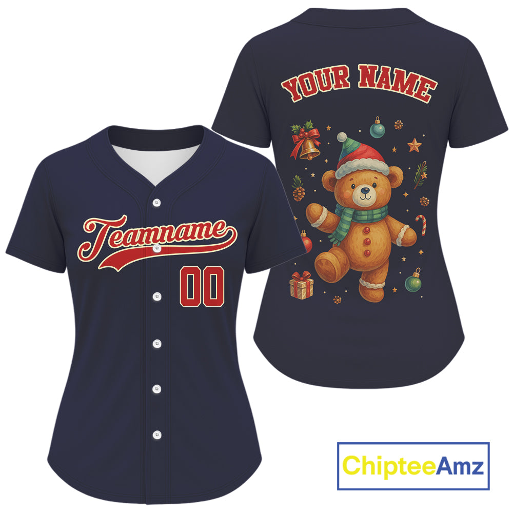 Custom Blue And Red Beer Xmas Baseball Jersey For Women Funny Christmas Baseball Gifts NYN1288