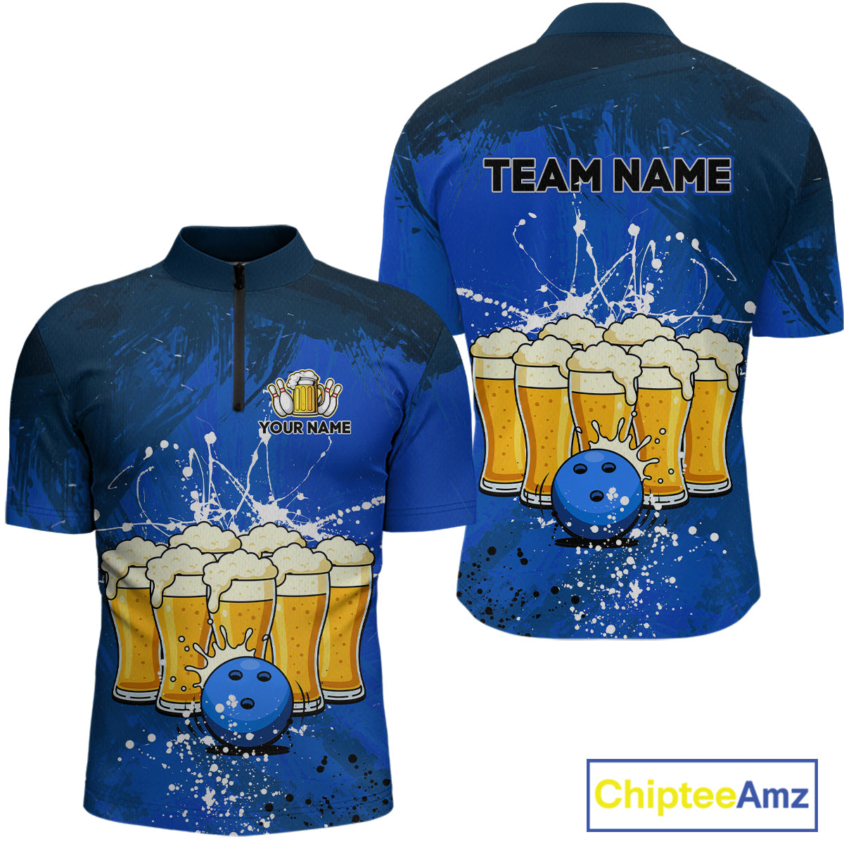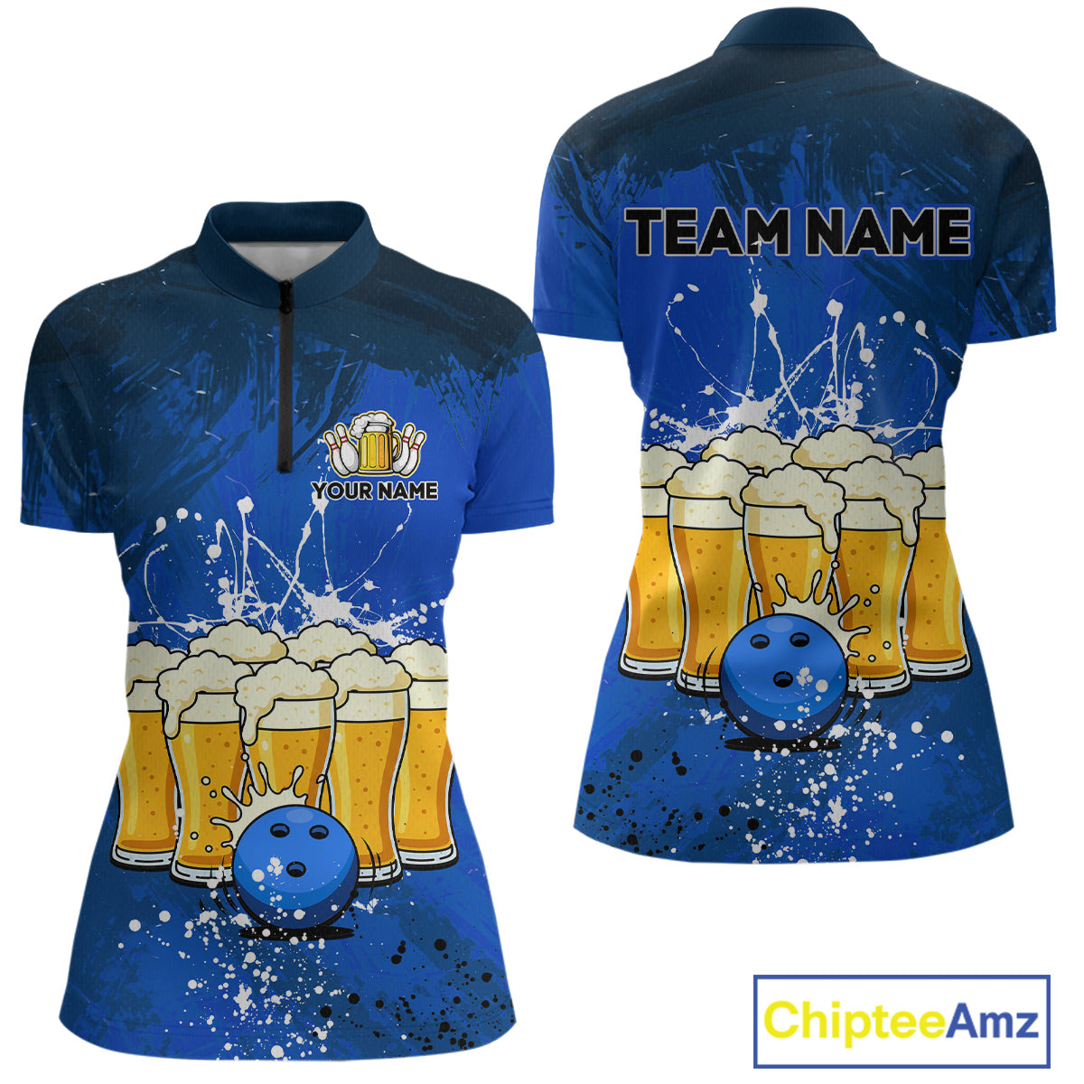 Beer Bowling Shirts Team Women Men Custom Blue Bowling Jersey Bowl League MBL249