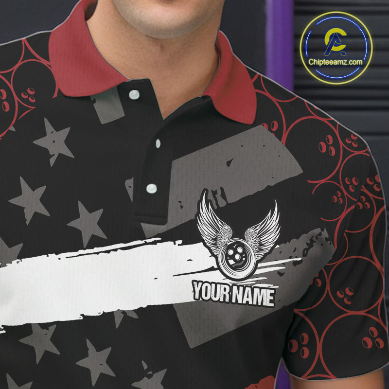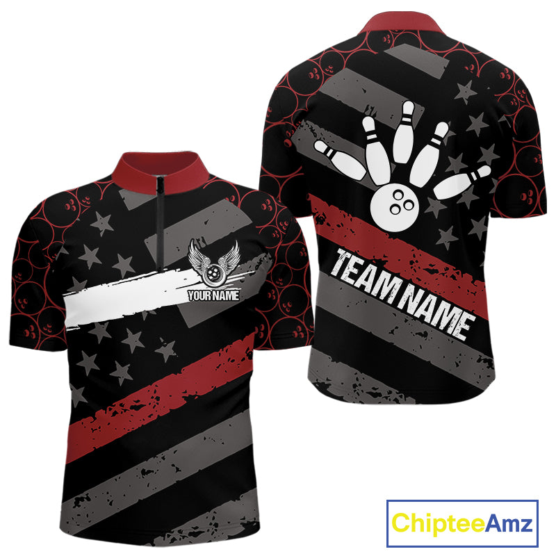 Black American flag Men bowling shirts Custom bowling camo Team Jerseys, gift for Bowlers | Red NQS10895