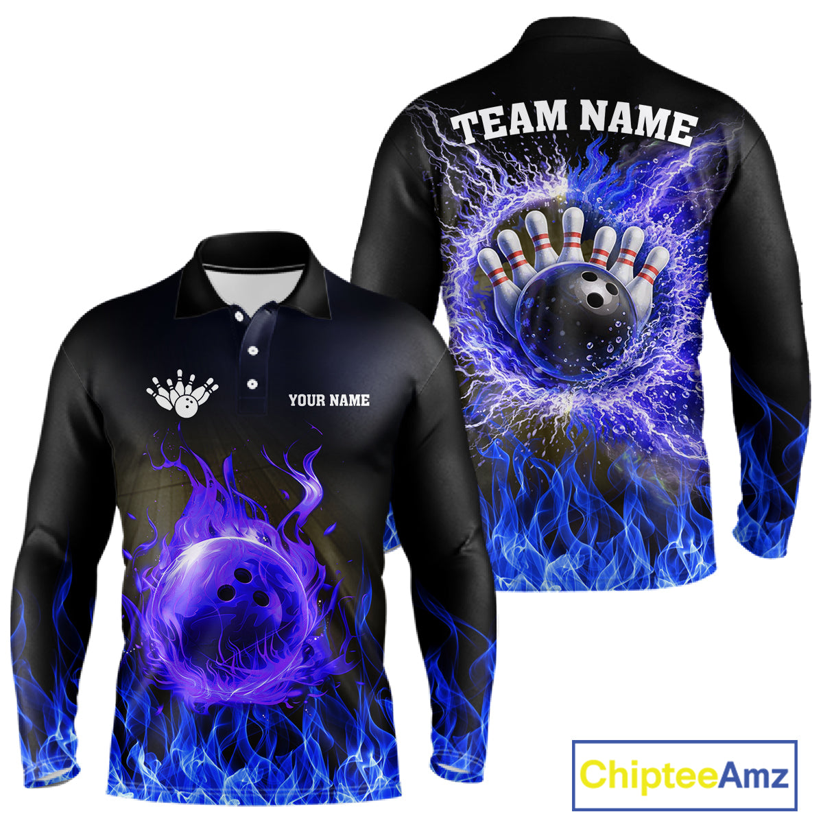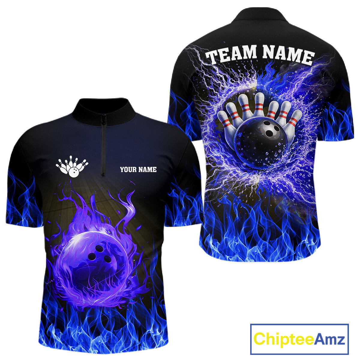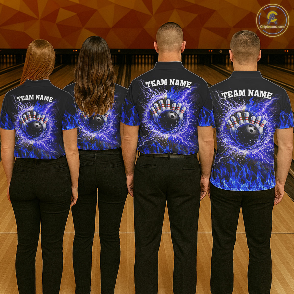 Black and Blue Flame Lightning Thunder Bowling Jersey for men custom Bowling Team League Shirts NQS11425
