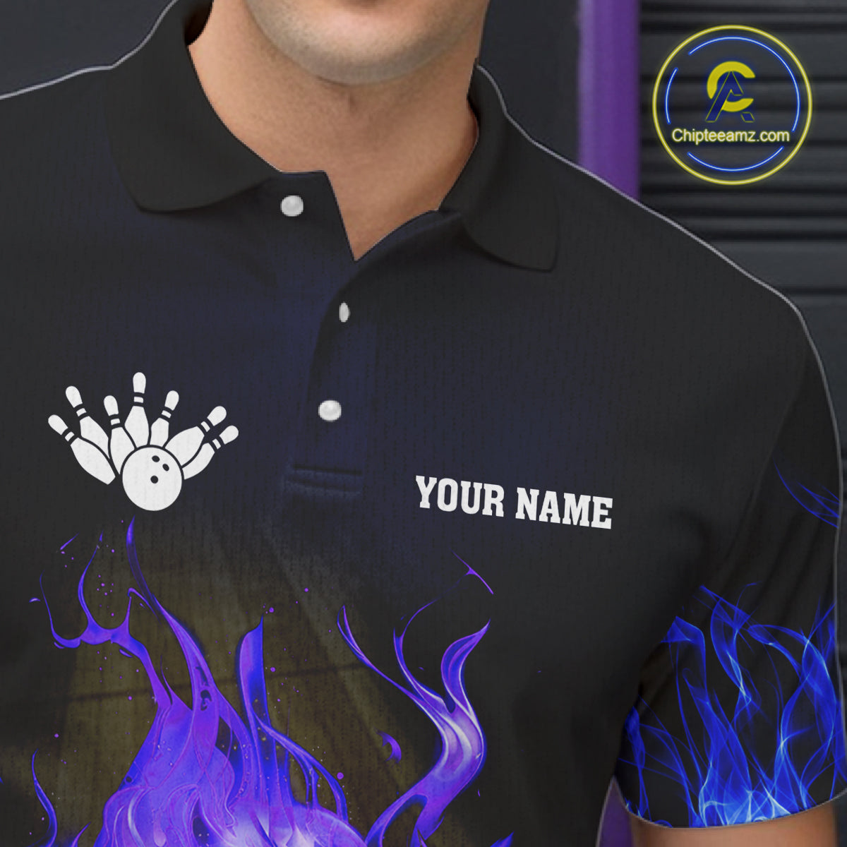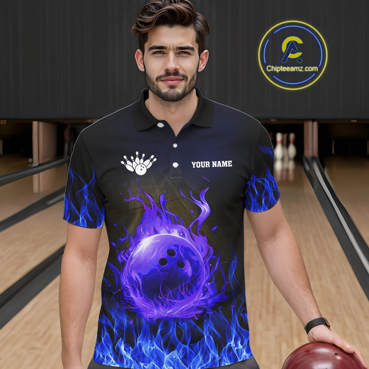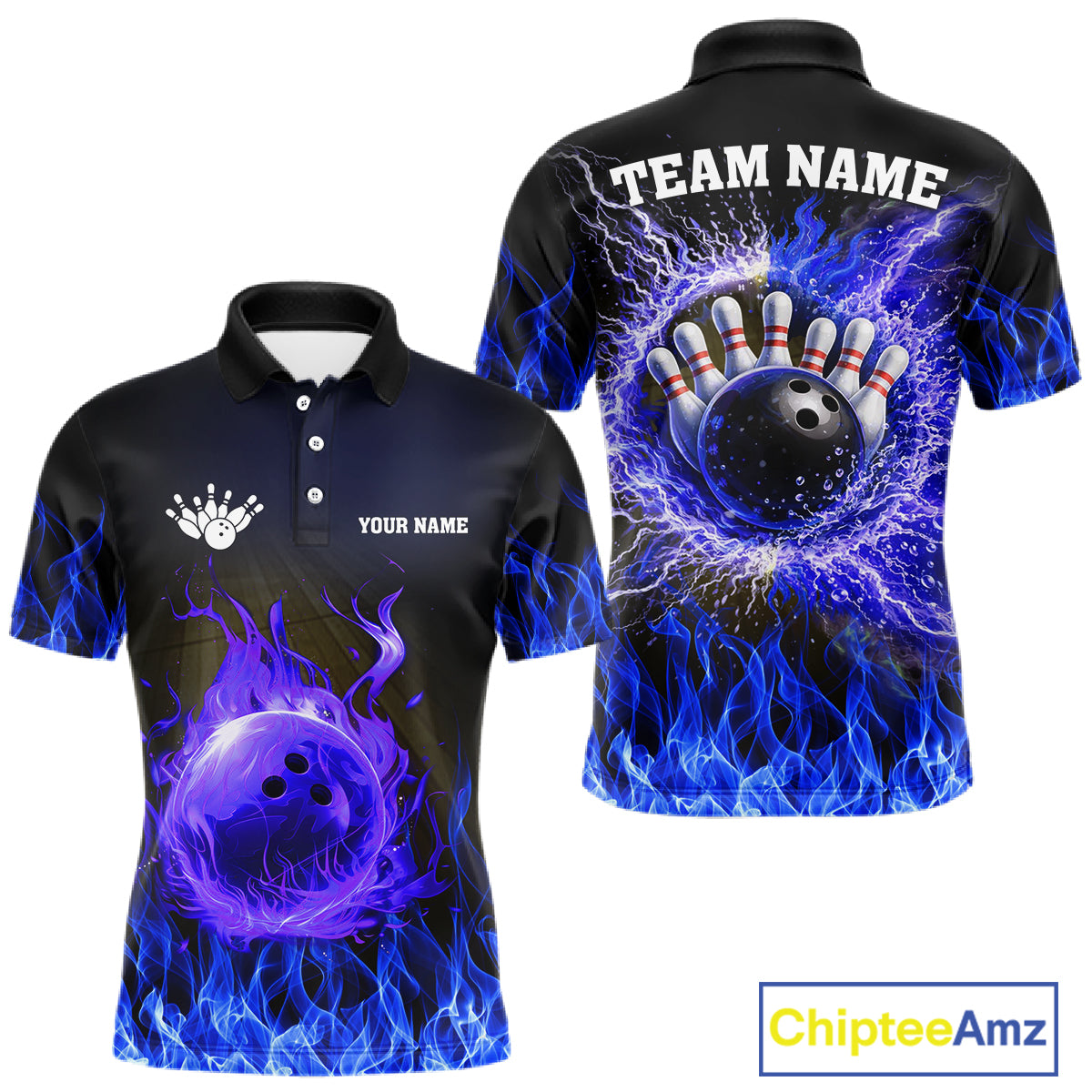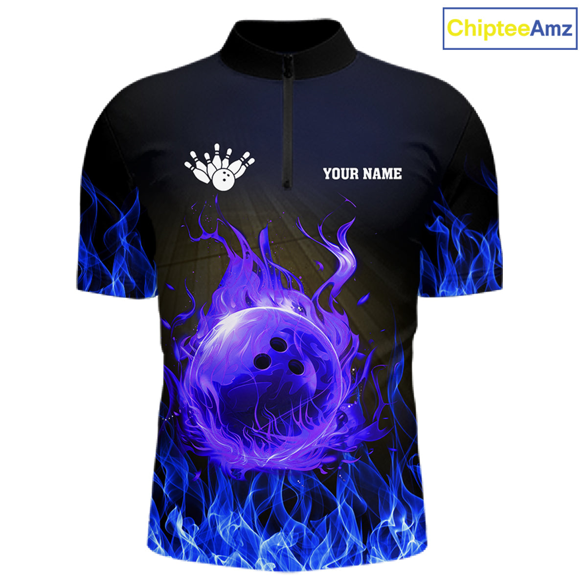 Black and Blue Flame Lightning Thunder Bowling Jersey for men custom Bowling Team League Shirts NQS11425