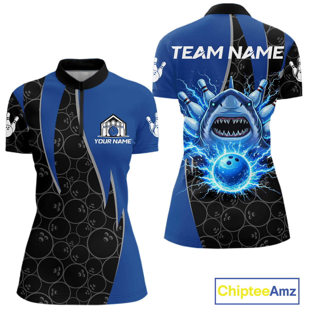 Black and blue lightning thunder shark bowling jerseys women custom bowling outfit ladies NQS11379