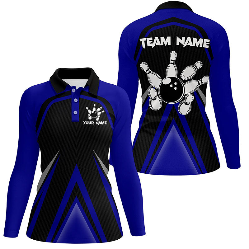 Black and Blue Retro Bowling Polo, Quarter Zip Shirts For Women Custom Team Bowling Jerseys, bowl gift NQS8367