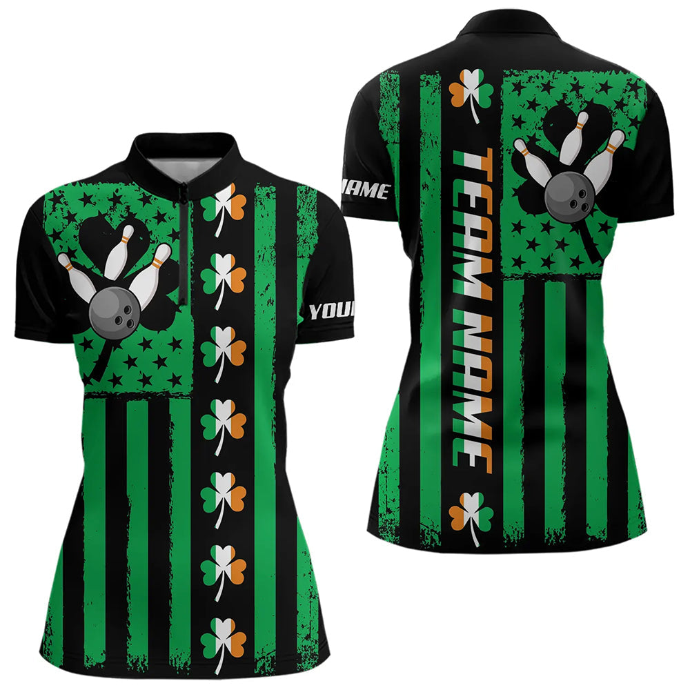 Black and Green American flag Irish Women bowling shirts Custom St Patrick Day Bowling Team Jersey NQS9612