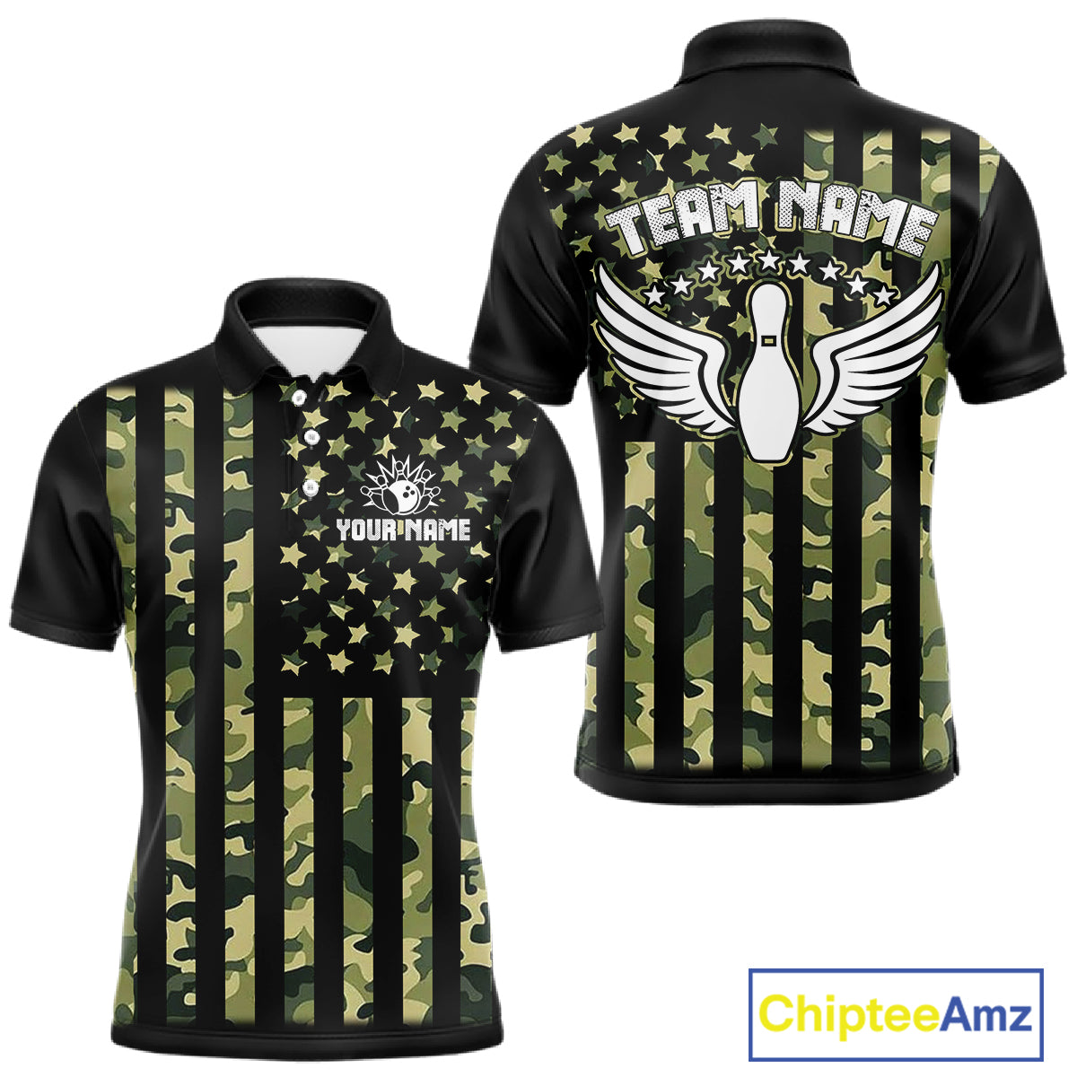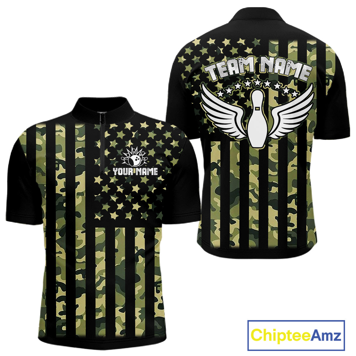 Black and Green Camo American Flag Bowling Shirts For Men Custom patriotic Bowling Team Jerseys NQS11177