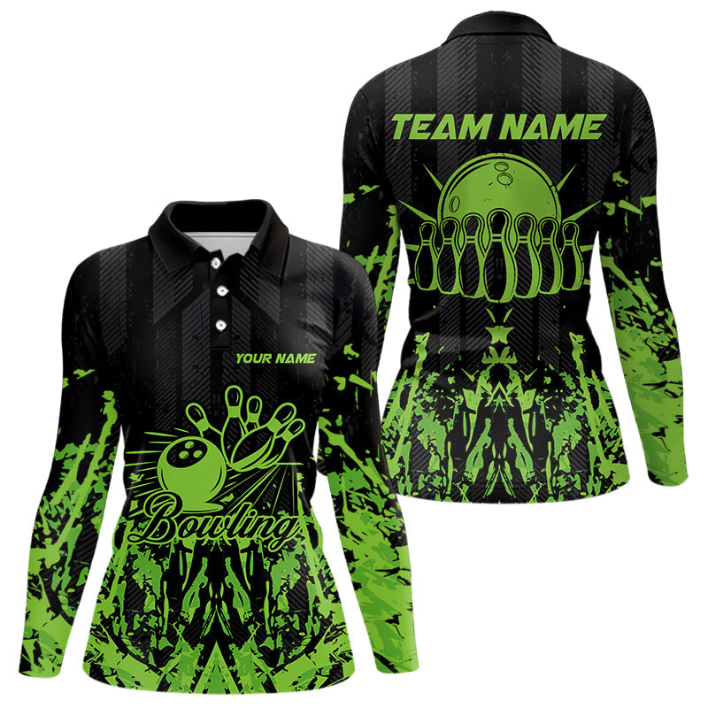 Black and Green Camo Bowling Team Shirts For Women Custom Bowling Uniform Polo, Quarter Zip Shirts NQS9665