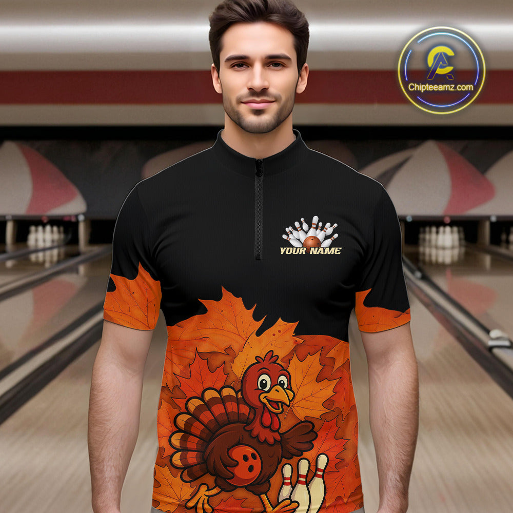 Black and Orange Autumn Leaf Custom Turkey Bowling Shirts For Men, Thanksgiving Bowling Team Jerseys NQS10699