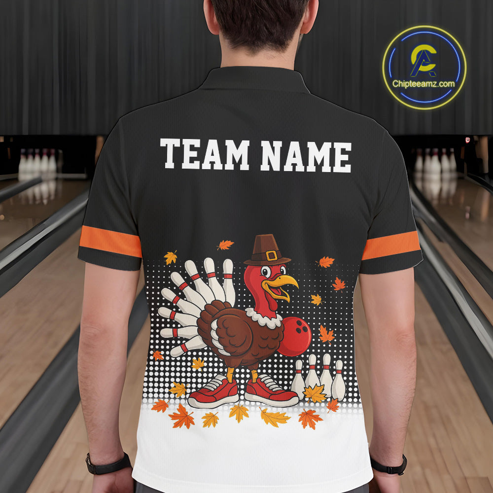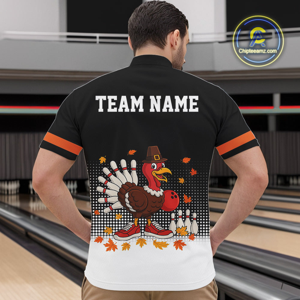 Black and Orange Turkey Bowling Polo, 1/4 Zip Shirts For Men Custom Thanksgiving team Bowling jersey NQS10779