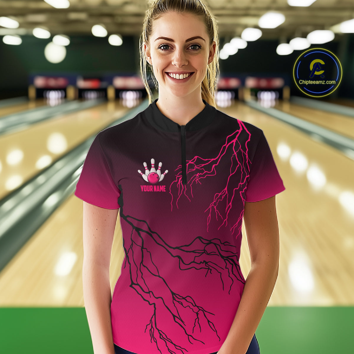 Black and Pink gradient Lightning thunder storm Bowling shirts for Women Custom Bowling Team Jerseys NQS11170