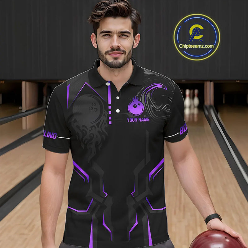 Black and Purple Bowling Polo, Quarter Zip Shirts For Men Custom Bowling Crown Team Jerseys Outfits NQS11223