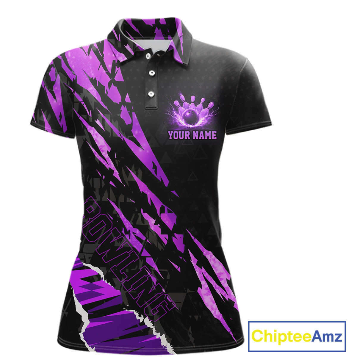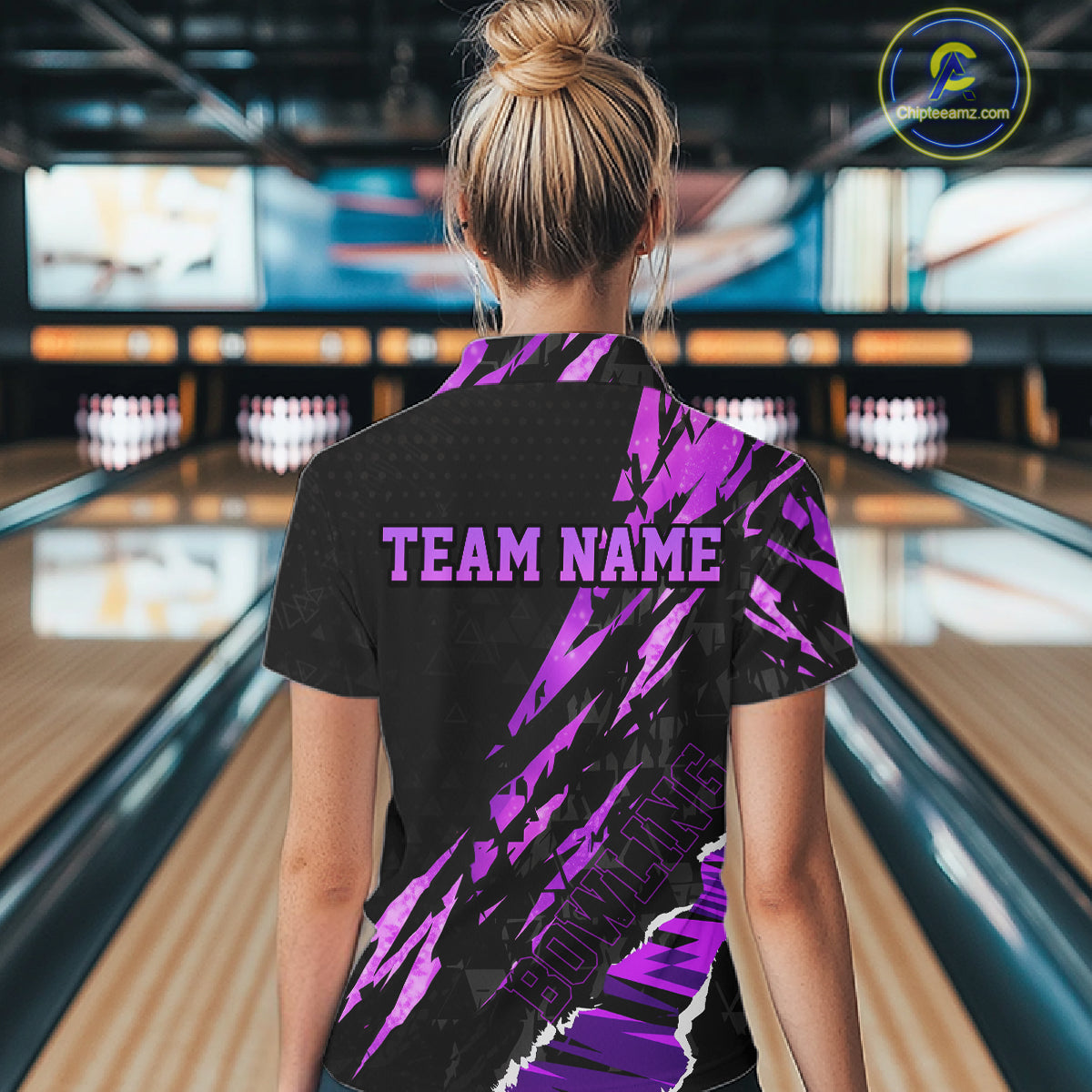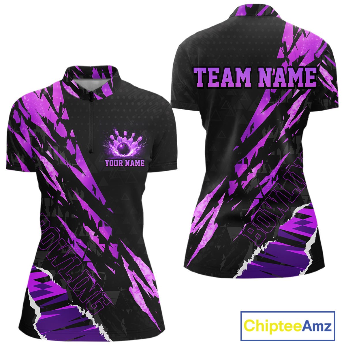 Black and Purple camo Bowling Polo shirts, 1/4 zip shirt for Women custom Bowling Team League Jerseys NQS11420