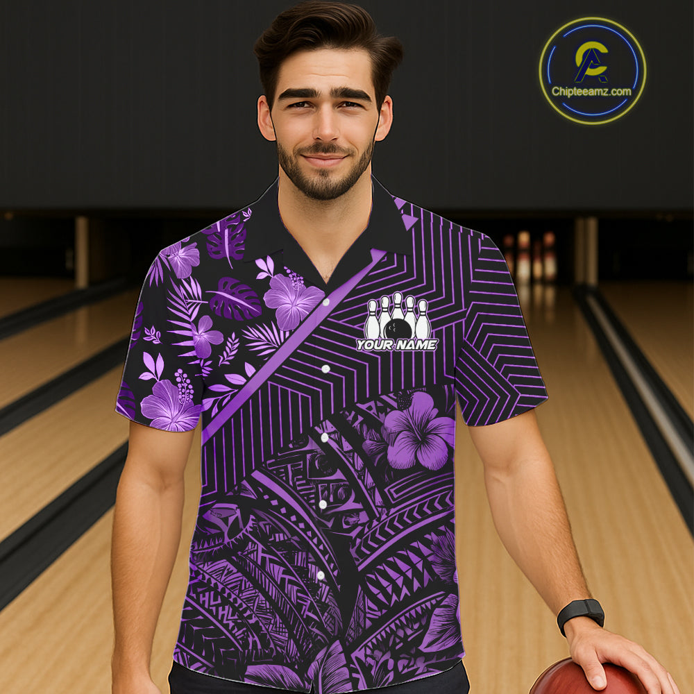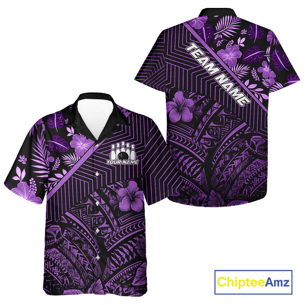 Black and Purple tribal pattern tropical Bowling Hawaiian Shirts Custom Team Bowling Jerseys NQS11470