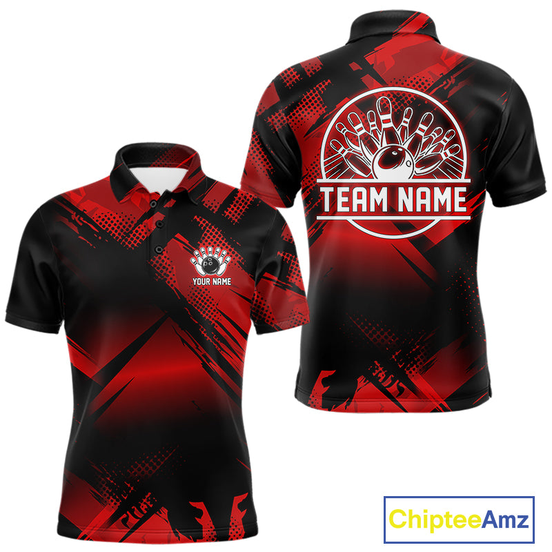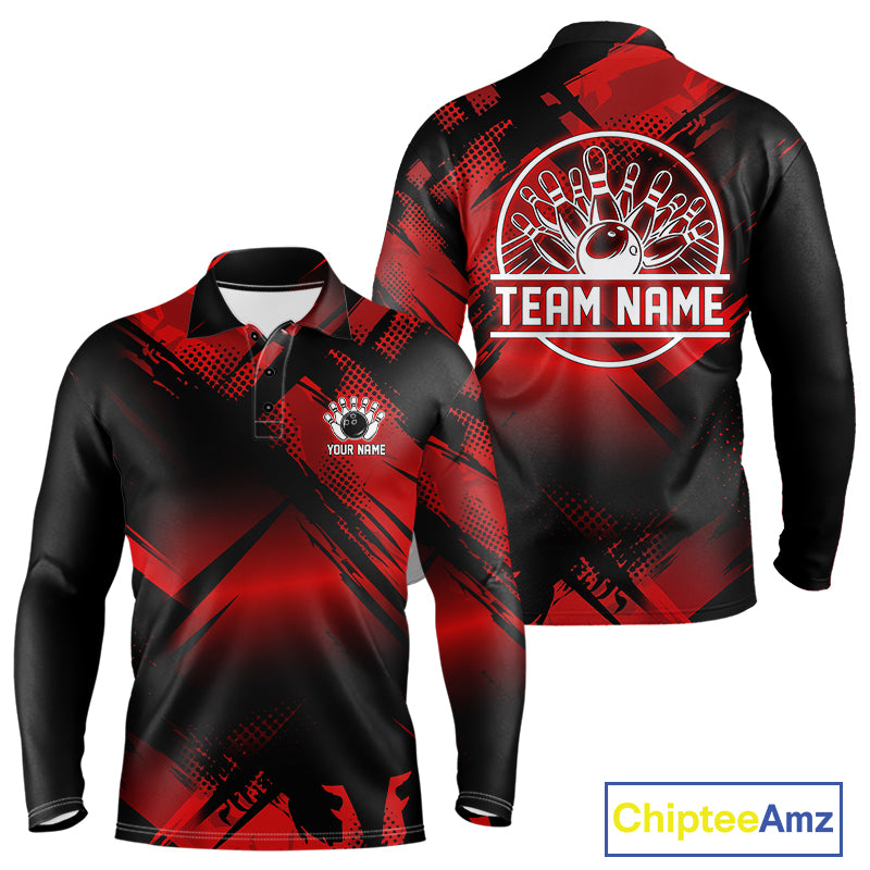 Black and Red Camo Bowling Polo, 1/4 zip Shirts For Men Custom Bowling Team League Jerseys NQS11175