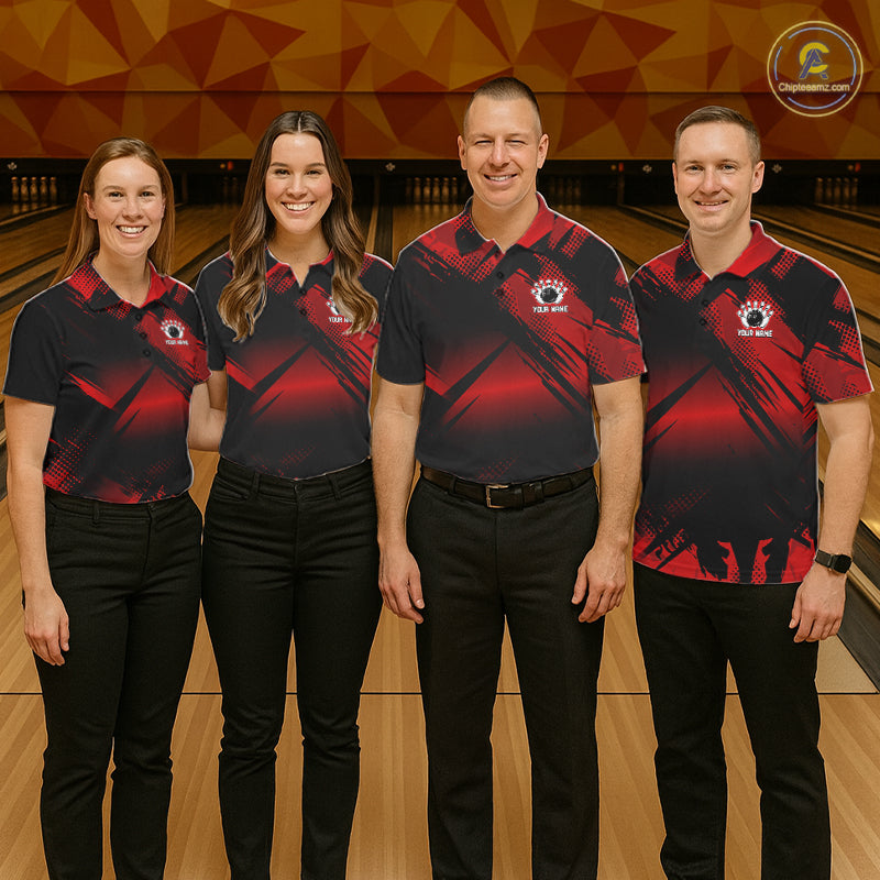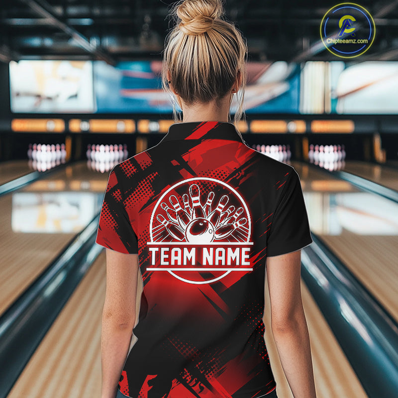 Black and Red Camo Bowling Polo, 1/4 zip Shirts For Women Custom Bowling Team League Jerseys NQS11175