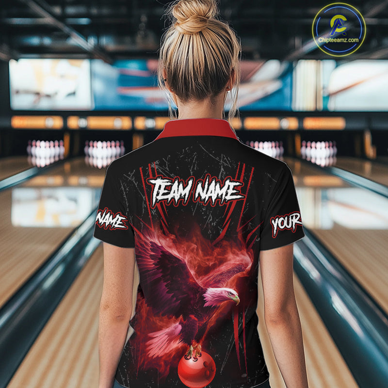 Black and Red Flame Eagle Bowling Shirt For Women Custom Team Name Bowling Jerseys For Bowlers NQS10674